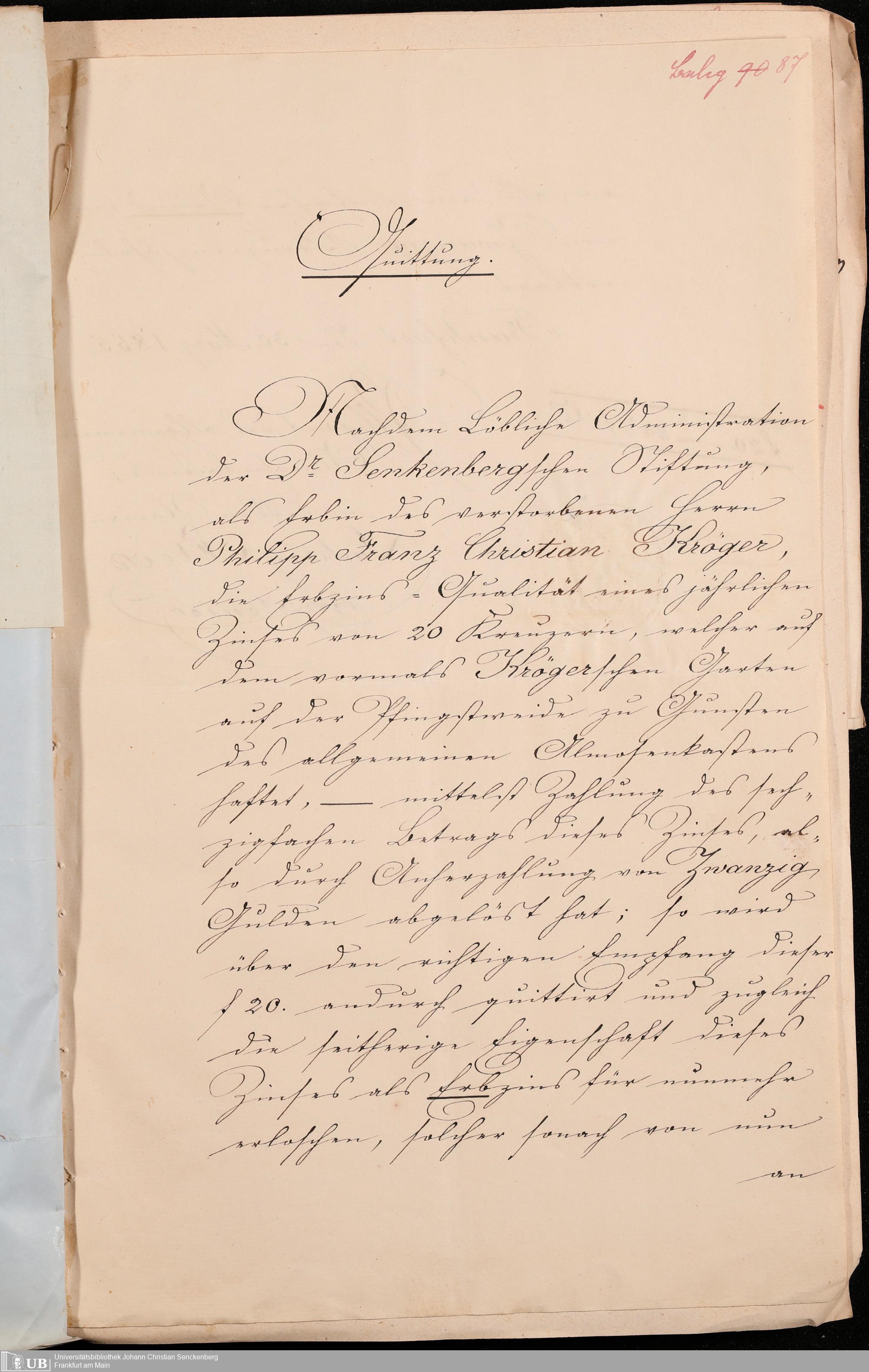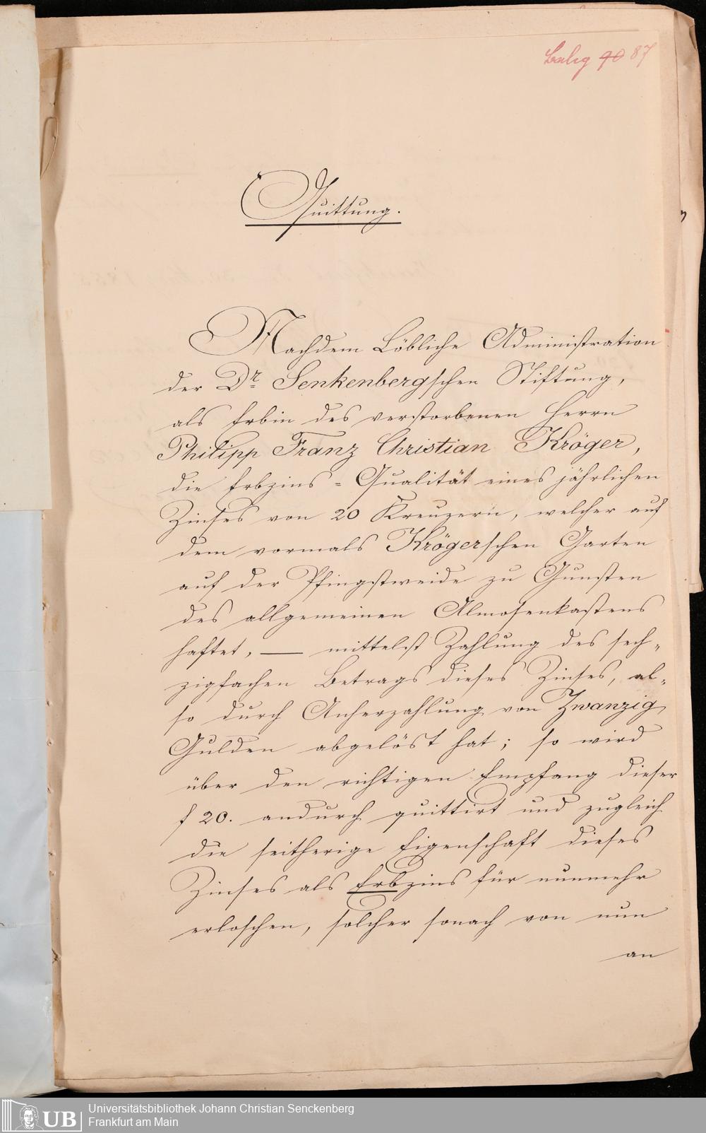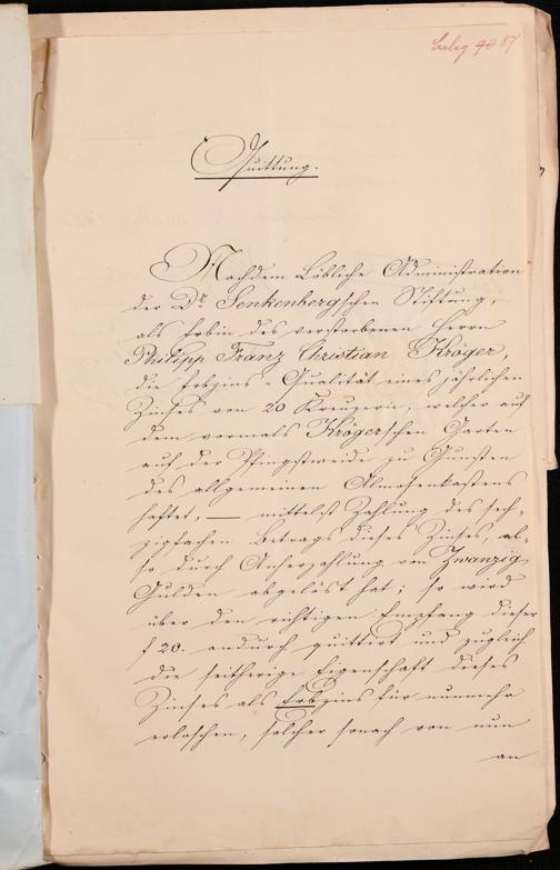 B 5 Dr. Senckenbergische Stiftung, 102 - zum Testament Kröger II