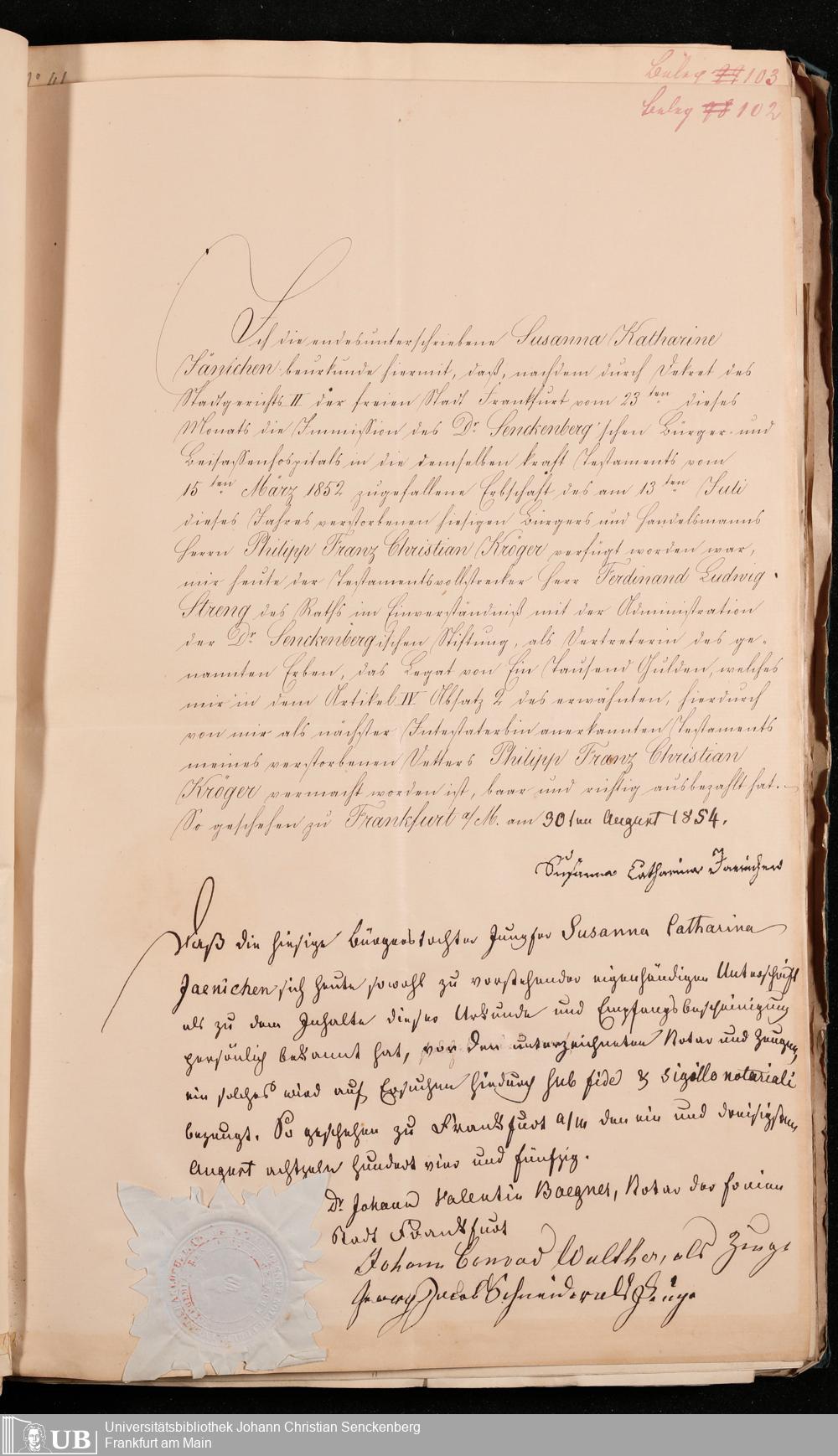 B 5 Dr. Senckenbergische Stiftung, 102 - zum Testament Kröger II