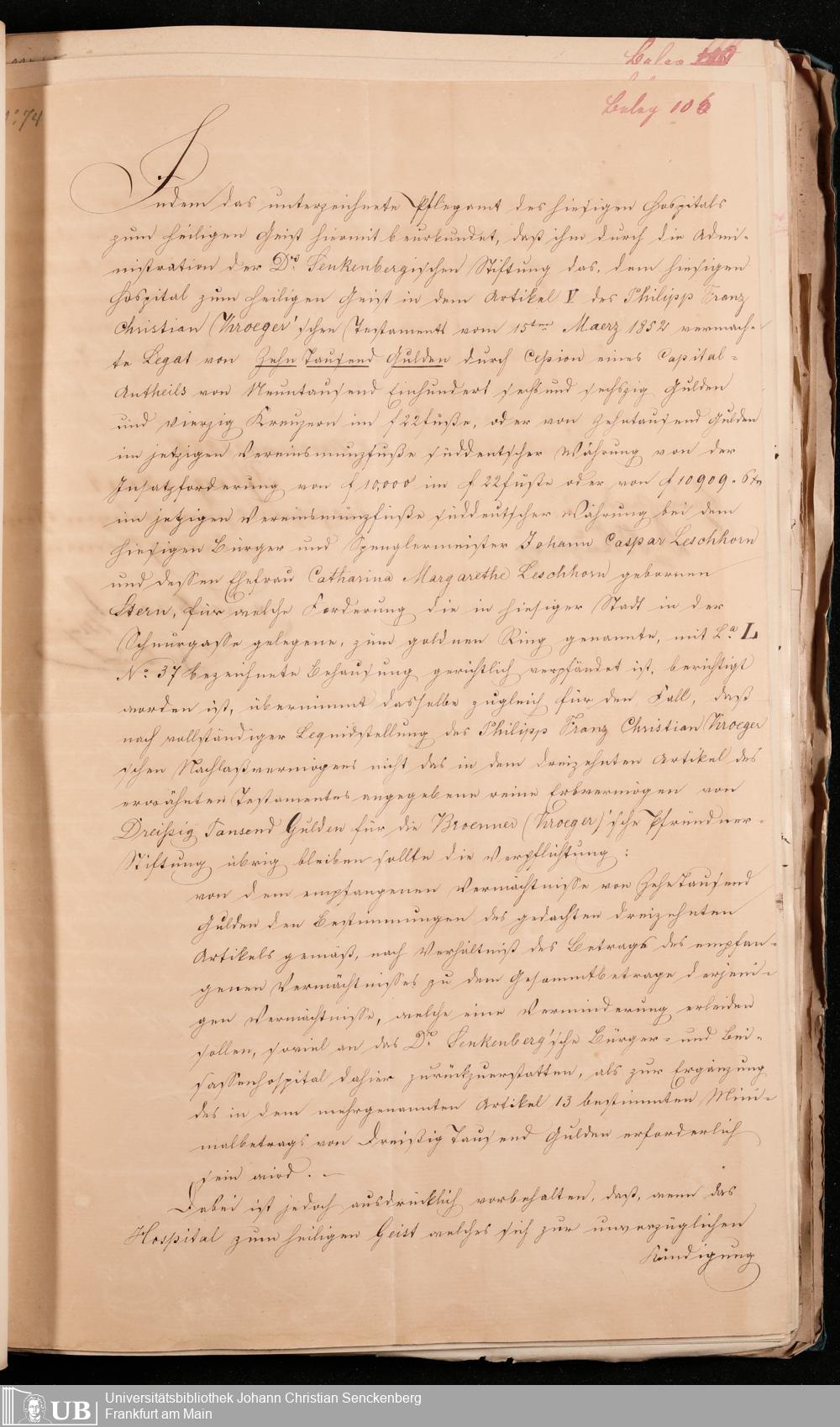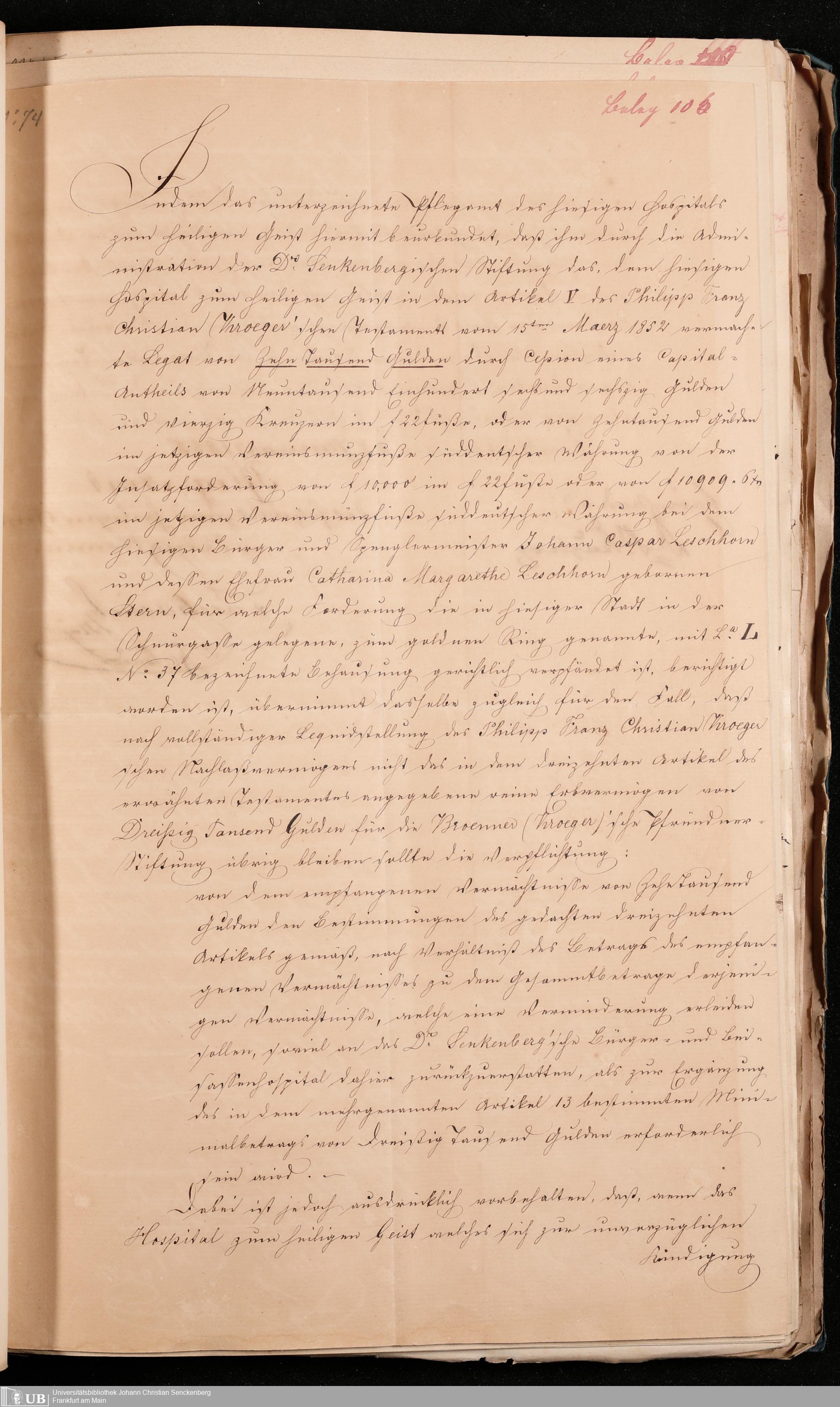 B 5 Dr. Senckenbergische Stiftung, 102 - zum Testament Kröger II