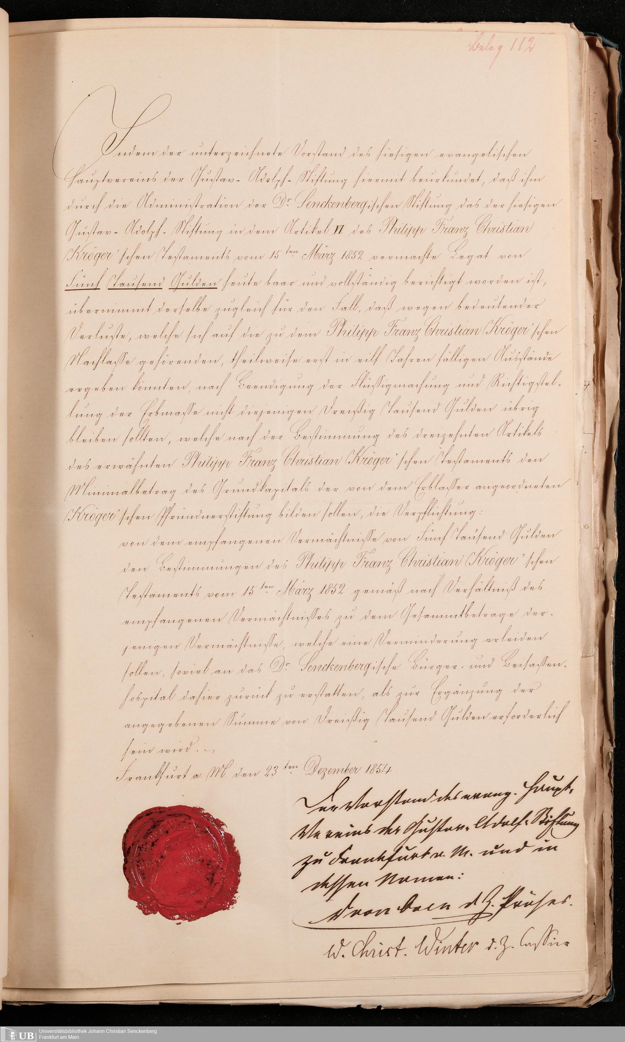 B 5 Dr. Senckenbergische Stiftung, 102 - zum Testament Kröger II