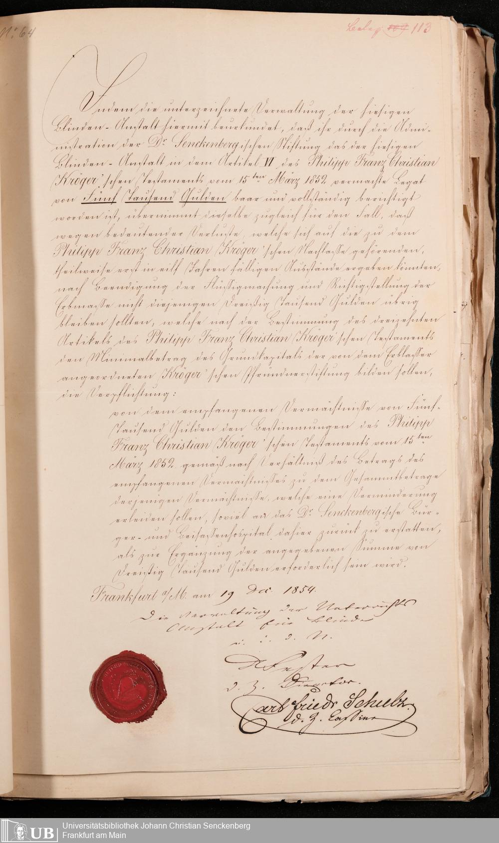 B 5 Dr. Senckenbergische Stiftung, 102 - zum Testament Kröger II