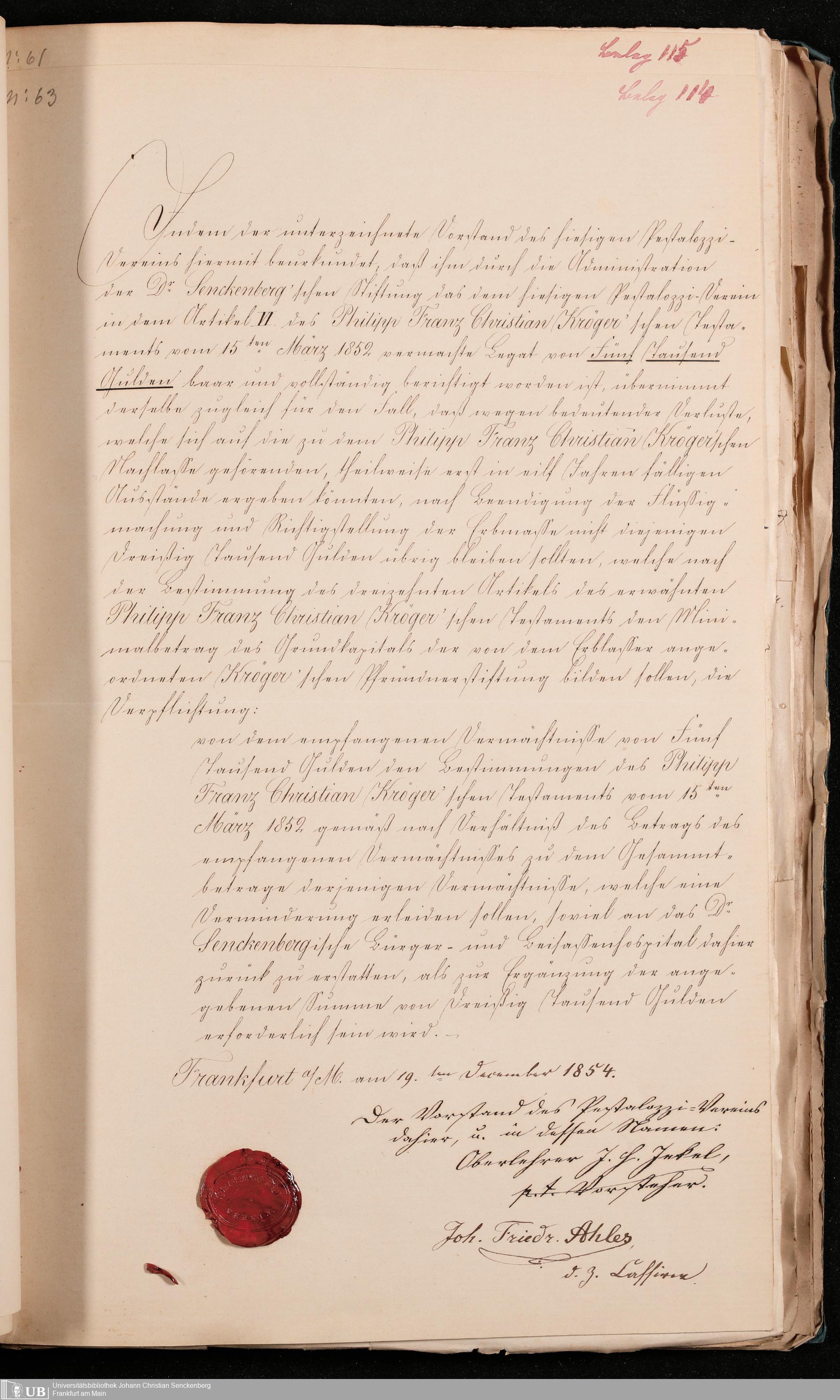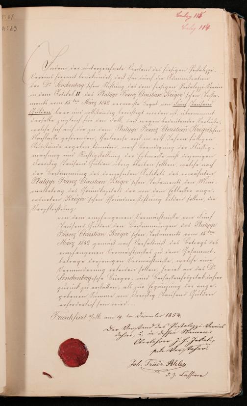 B 5 Dr. Senckenbergische Stiftung, 102 - zum Testament Kröger II