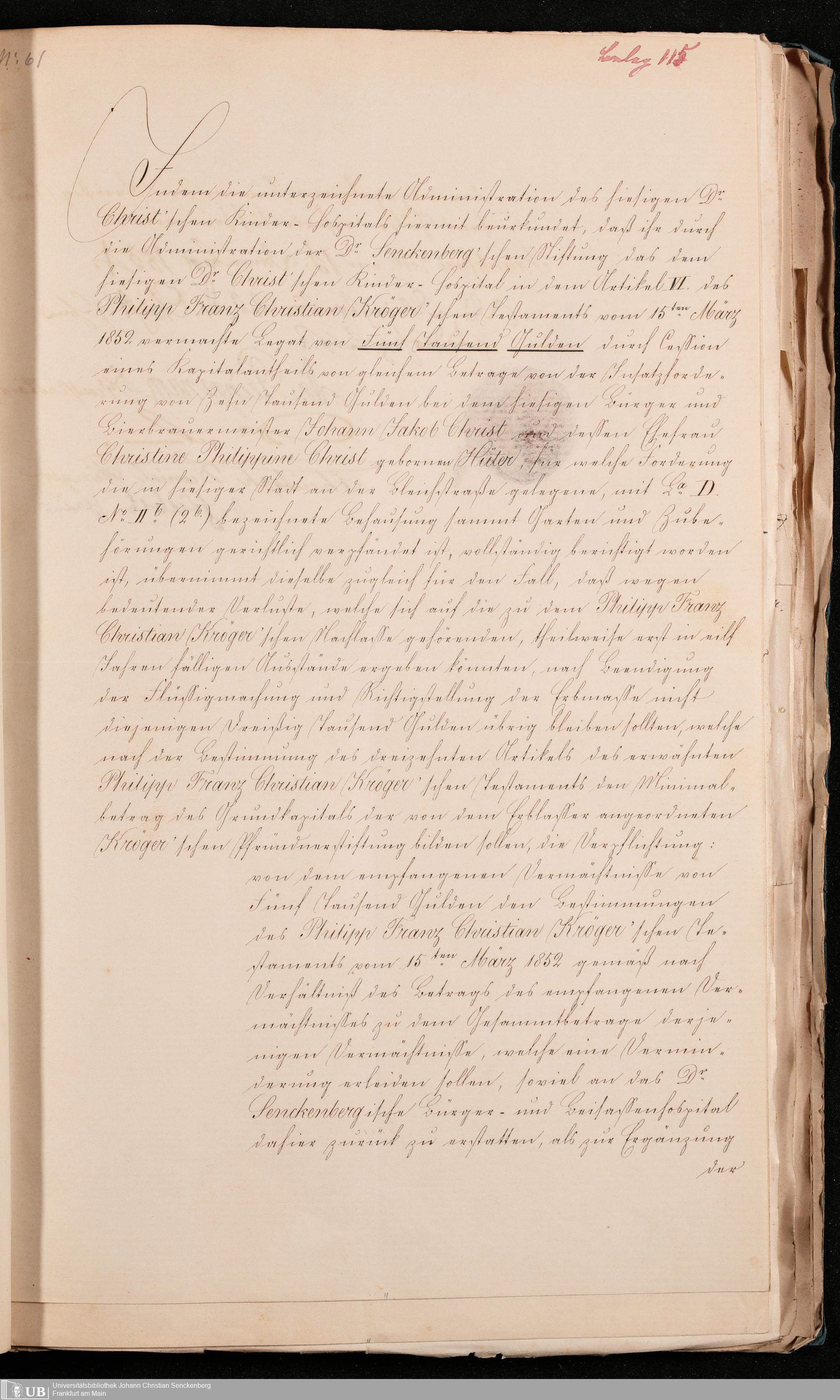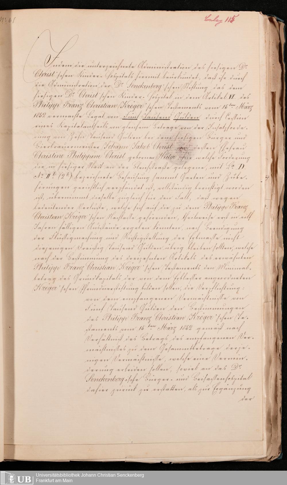 B 5 Dr. Senckenbergische Stiftung, 102 - zum Testament Kröger II
