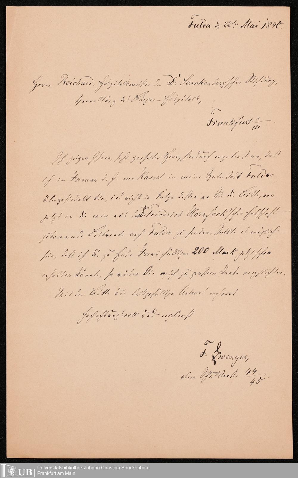 B 5 Dr. Senckenbergische Stiftung, 103 - Nachlass Hornfleck