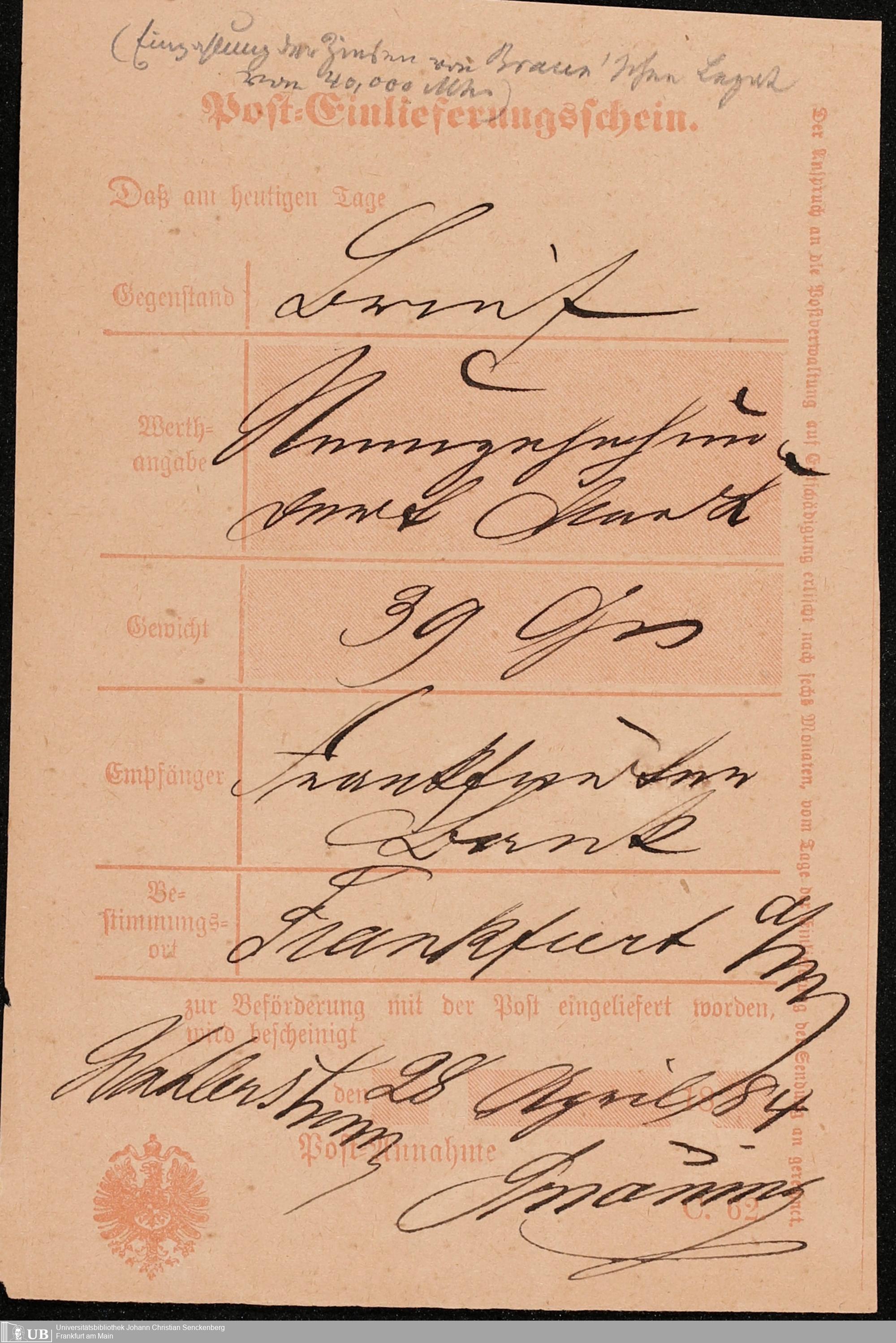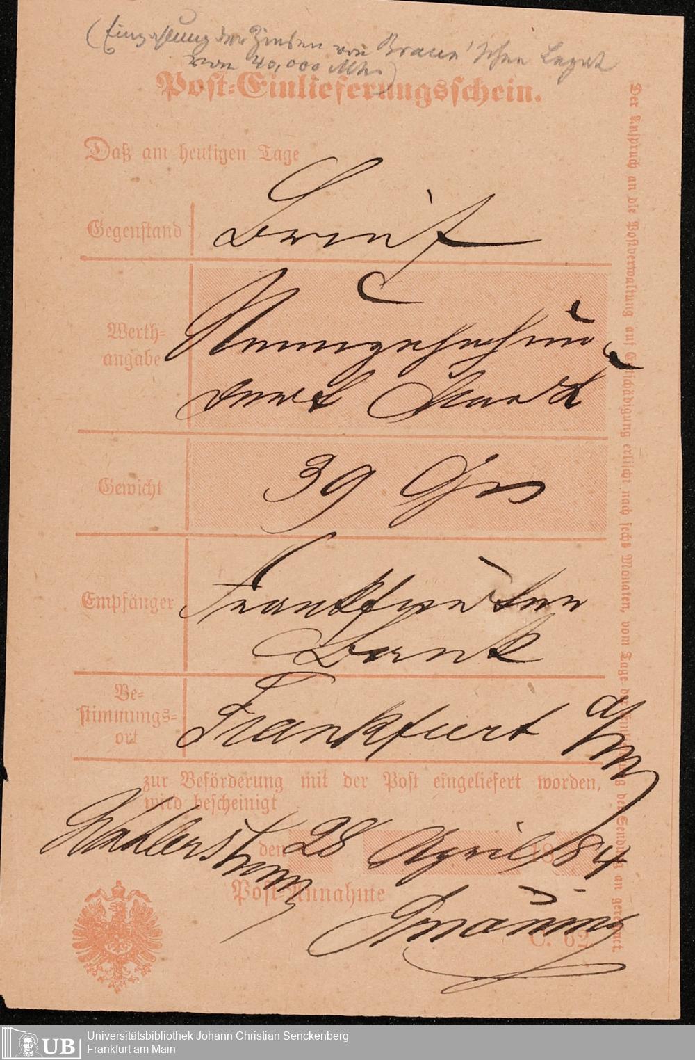 B 5 Dr. Senckenbergische Stiftung, 103 - Nachlass Hornfleck