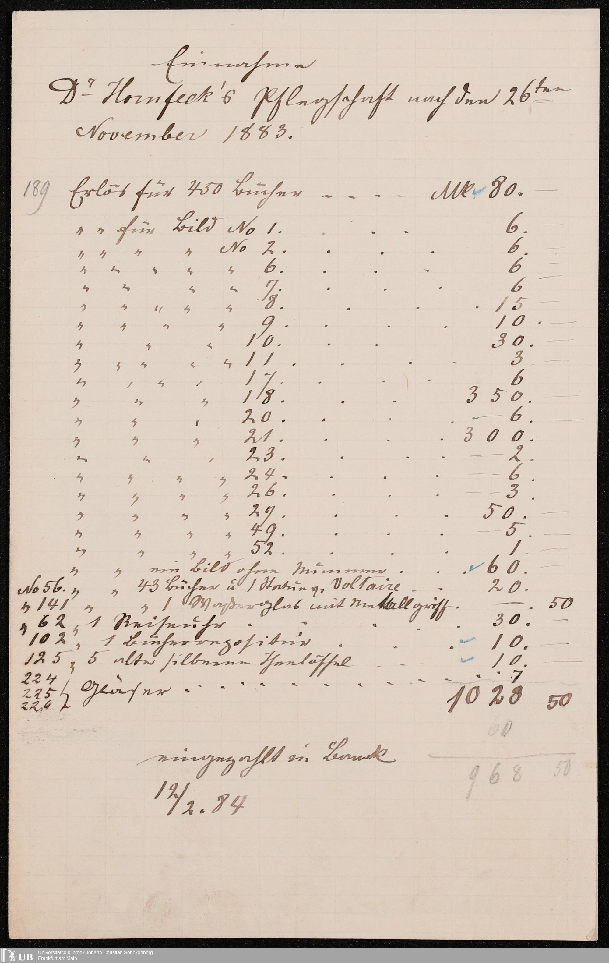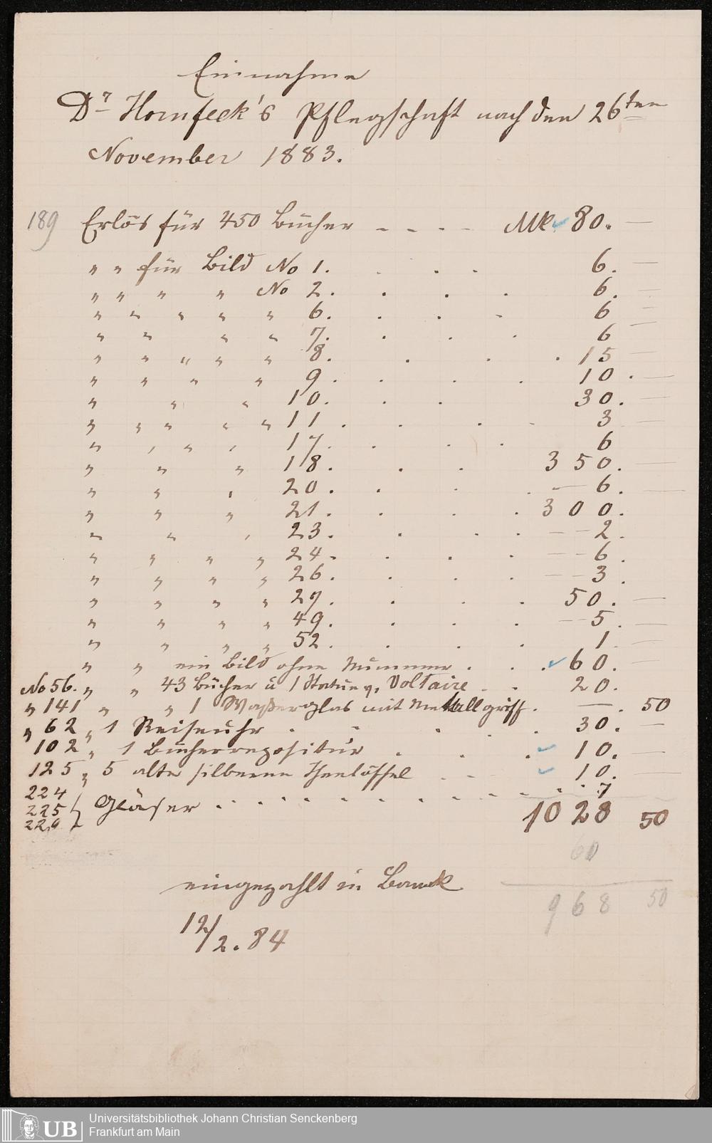 B 5 Dr. Senckenbergische Stiftung, 103 - Nachlass Hornfleck