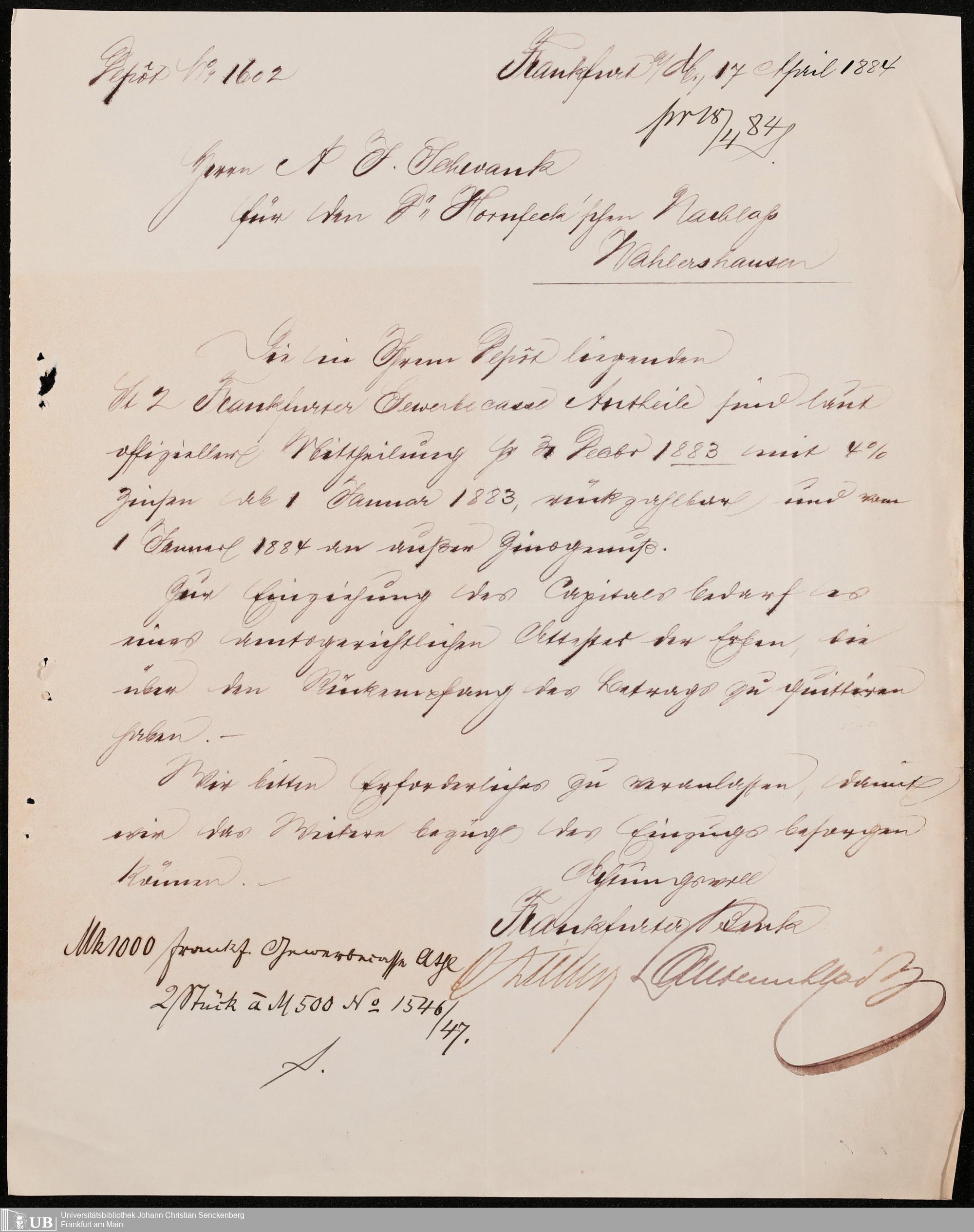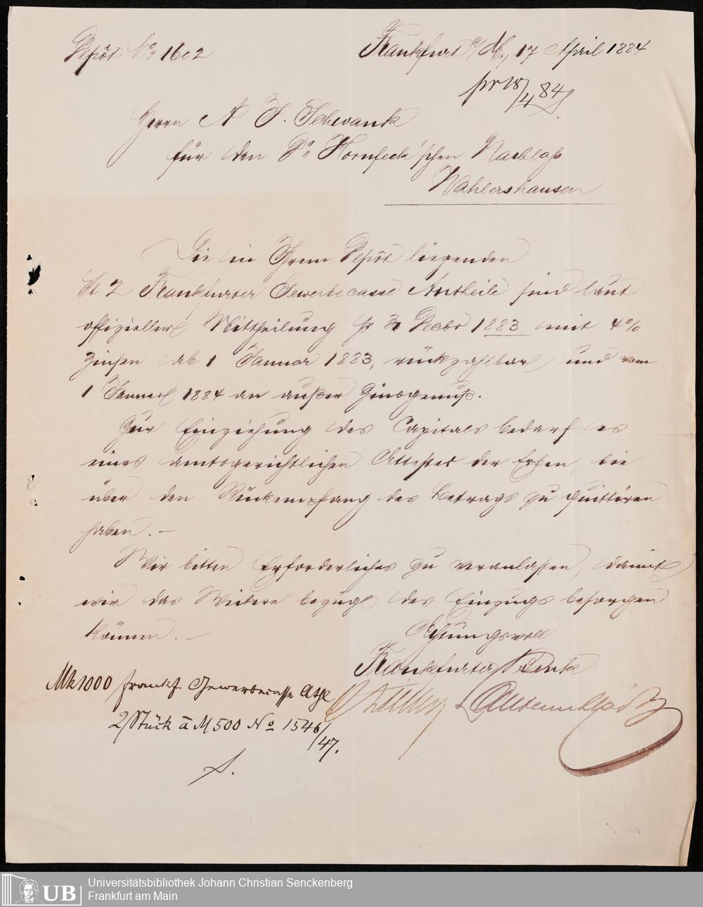 B 5 Dr. Senckenbergische Stiftung, 103 - Nachlass Hornfleck