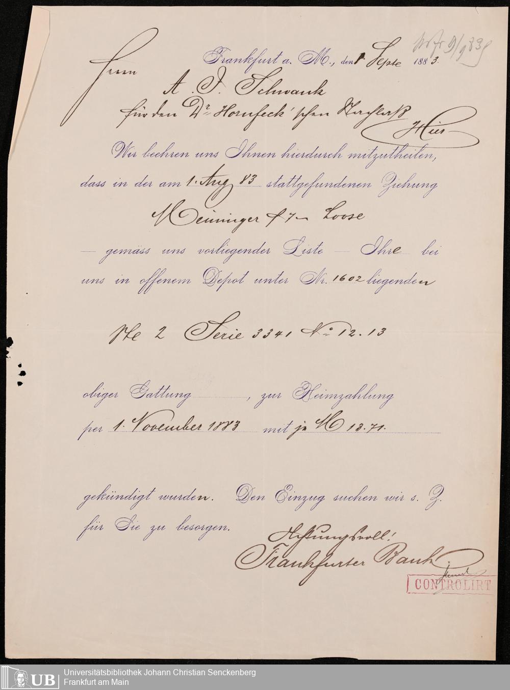 B 5 Dr. Senckenbergische Stiftung, 103 - Nachlass Hornfleck