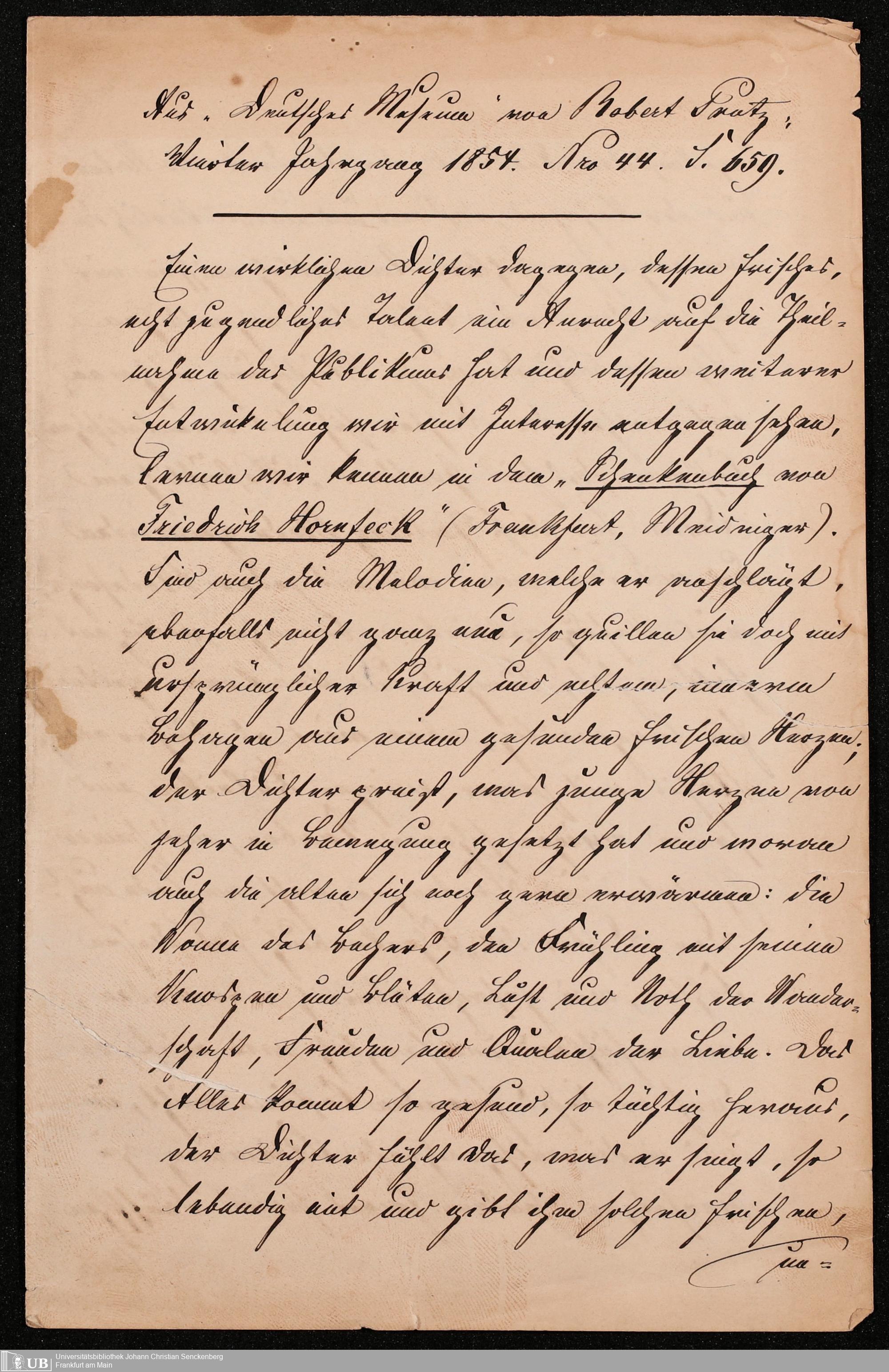 B 5 Dr. Senckenbergische Stiftung, 104 - Nachlass Hornfleck