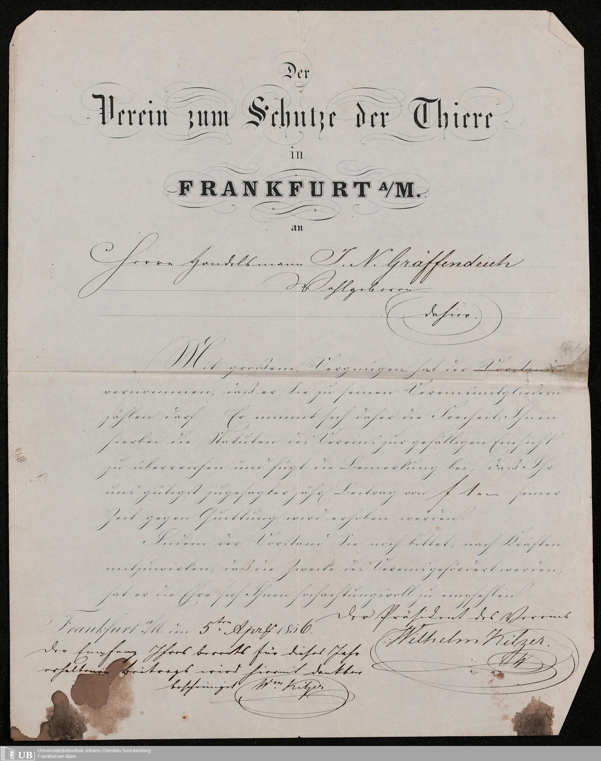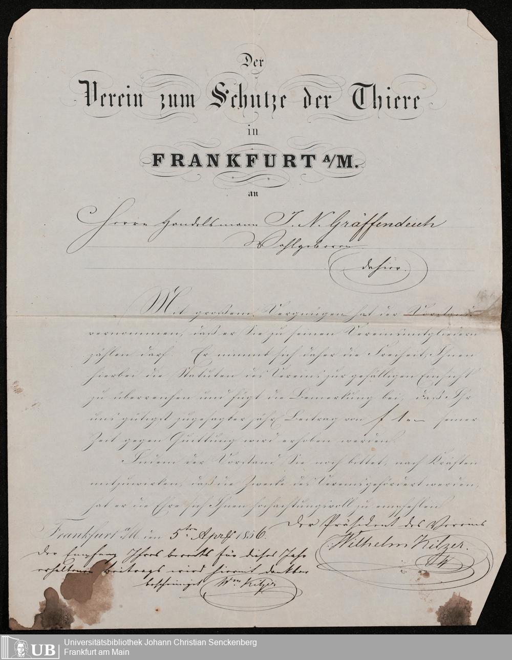B 5 Dr. Senckenbergische Stiftung, 105 - Erbschaftspapier Gräffendeich