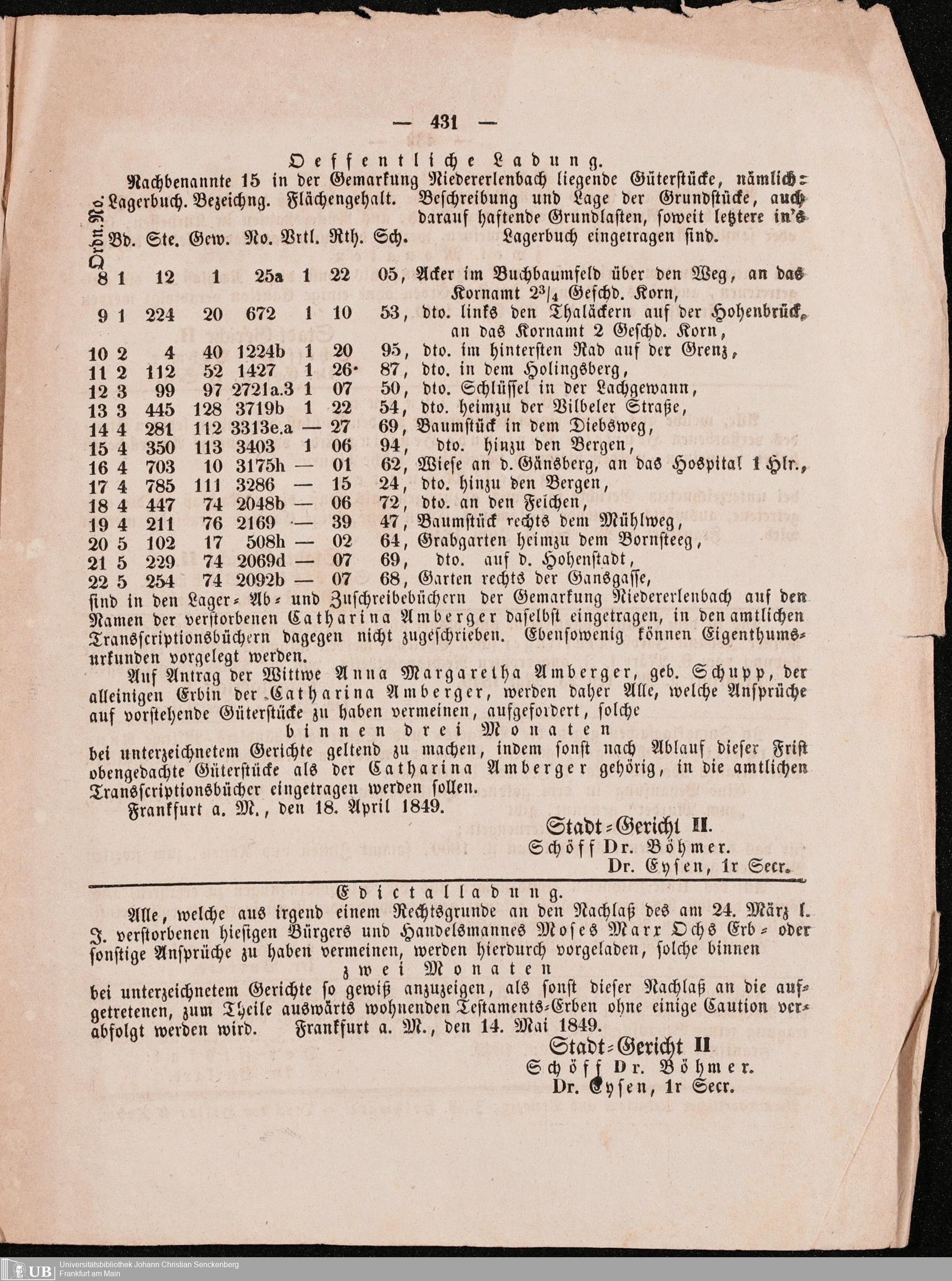 B 5 Dr. Senckenbergische Stiftung, 105 - Erbschaftspapier Gräffendeich