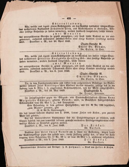B 5 Dr. Senckenbergische Stiftung, 105 - Erbschaftspapier Gräffendeich
