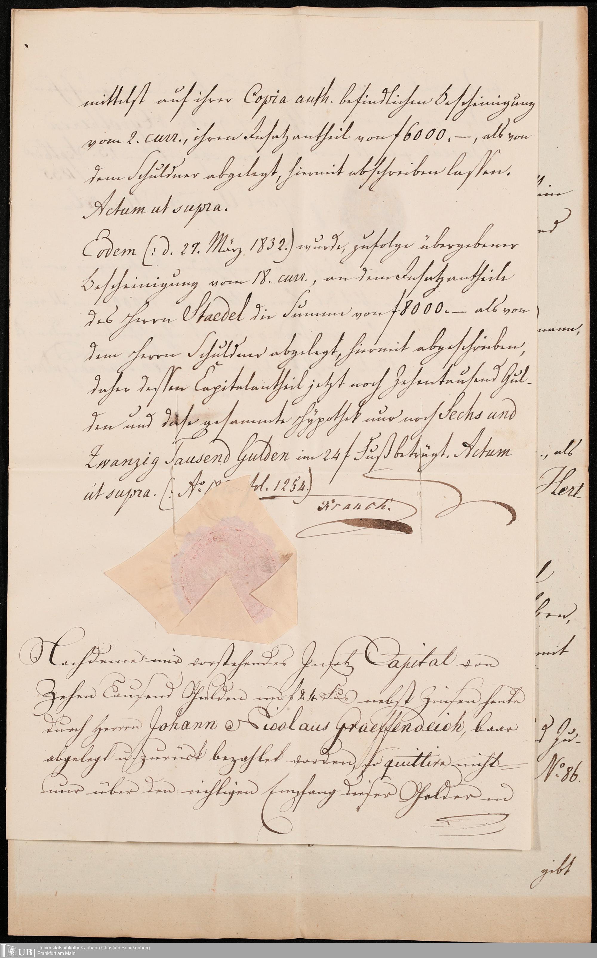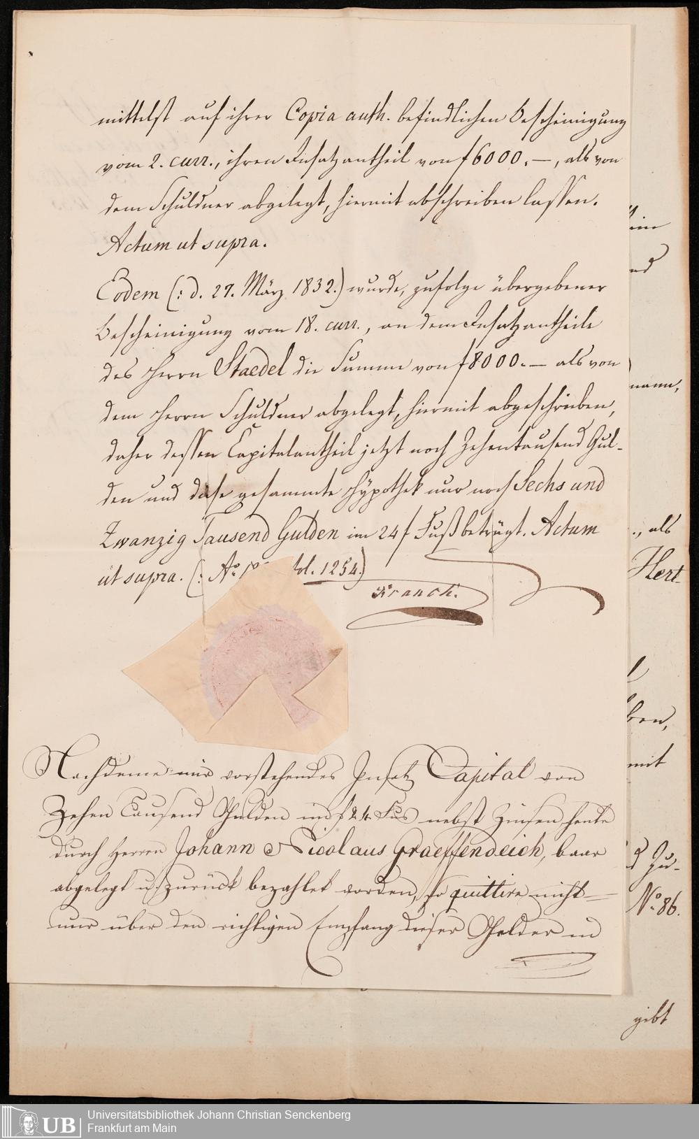 B 5 Dr. Senckenbergische Stiftung, 105 - Erbschaftspapier Gräffendeich