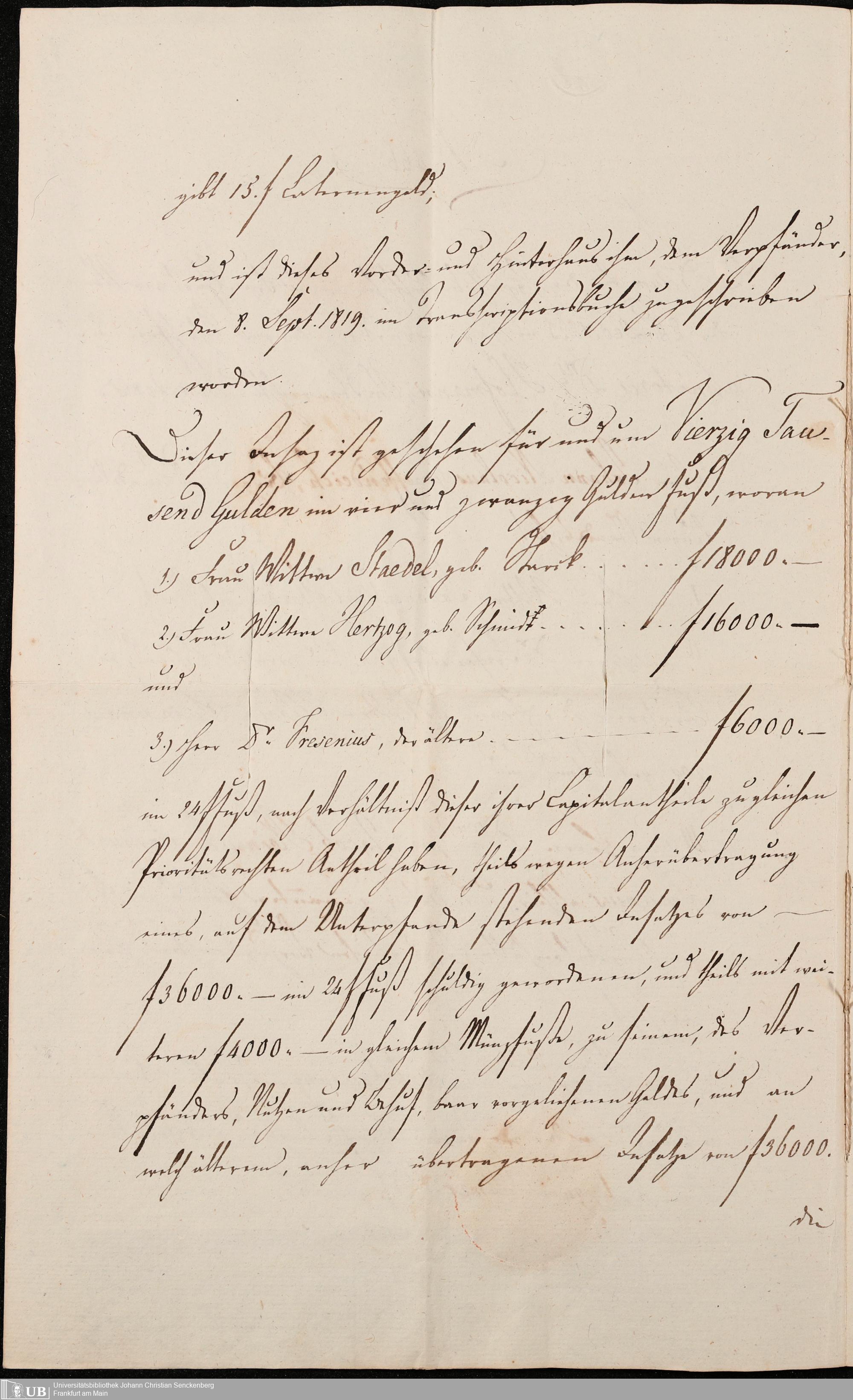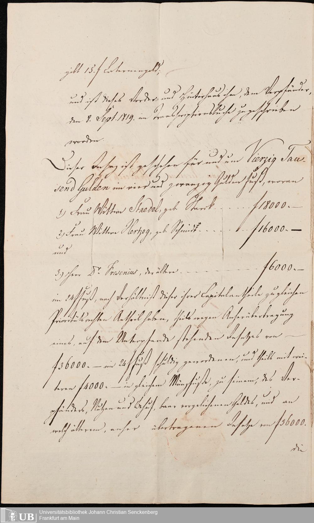 B 5 Dr. Senckenbergische Stiftung, 105 - Erbschaftspapier Gräffendeich