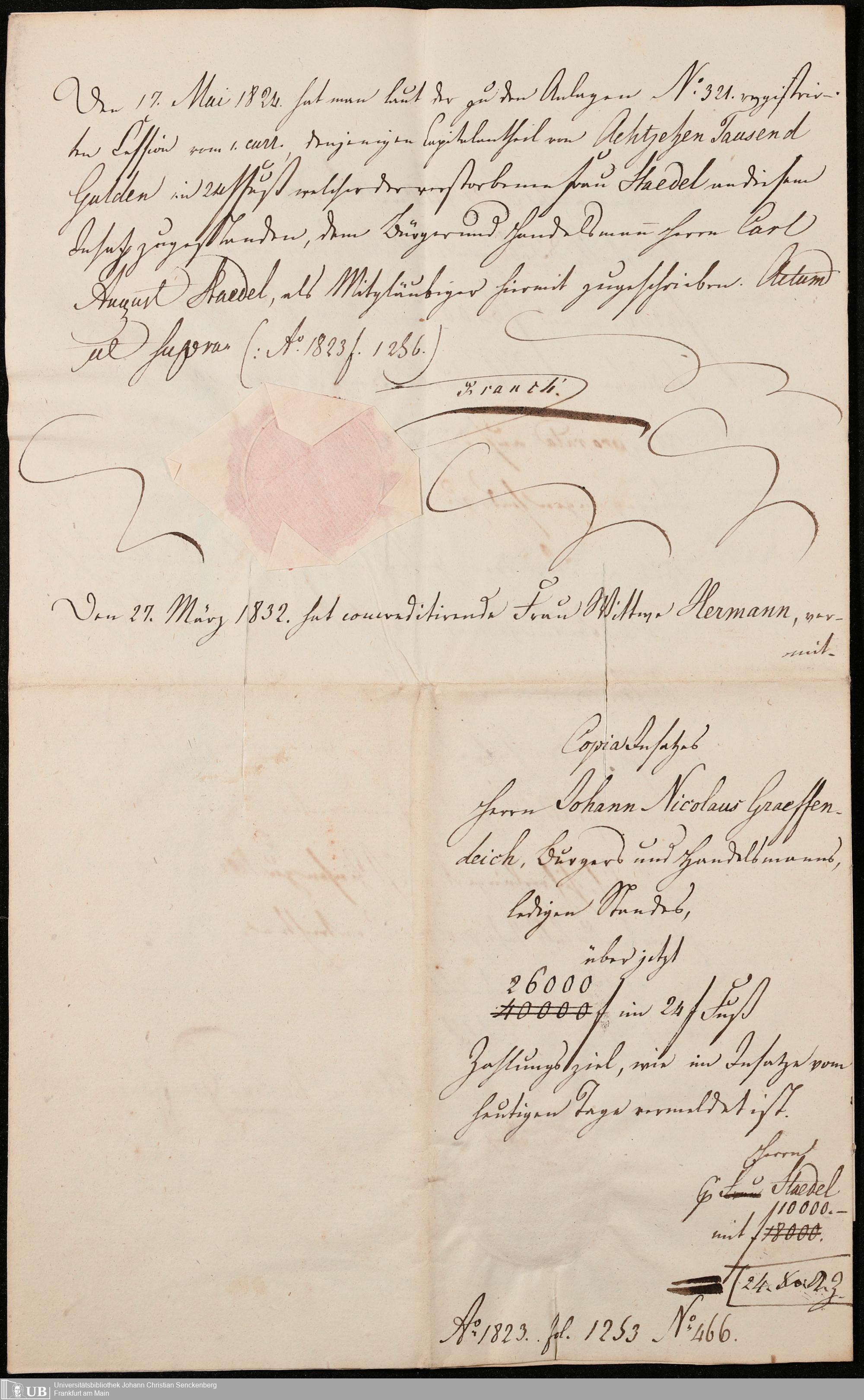 B 5 Dr. Senckenbergische Stiftung, 105 - Erbschaftspapier Gräffendeich