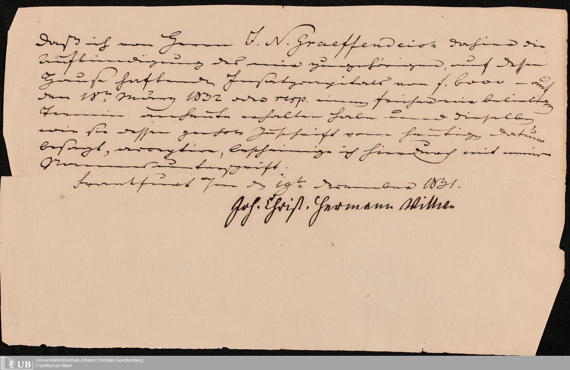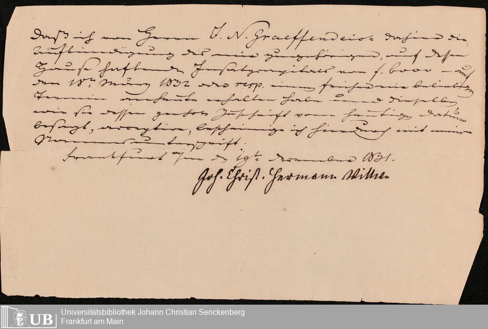 B 5 Dr. Senckenbergische Stiftung, 105 - Erbschaftspapier Gräffendeich