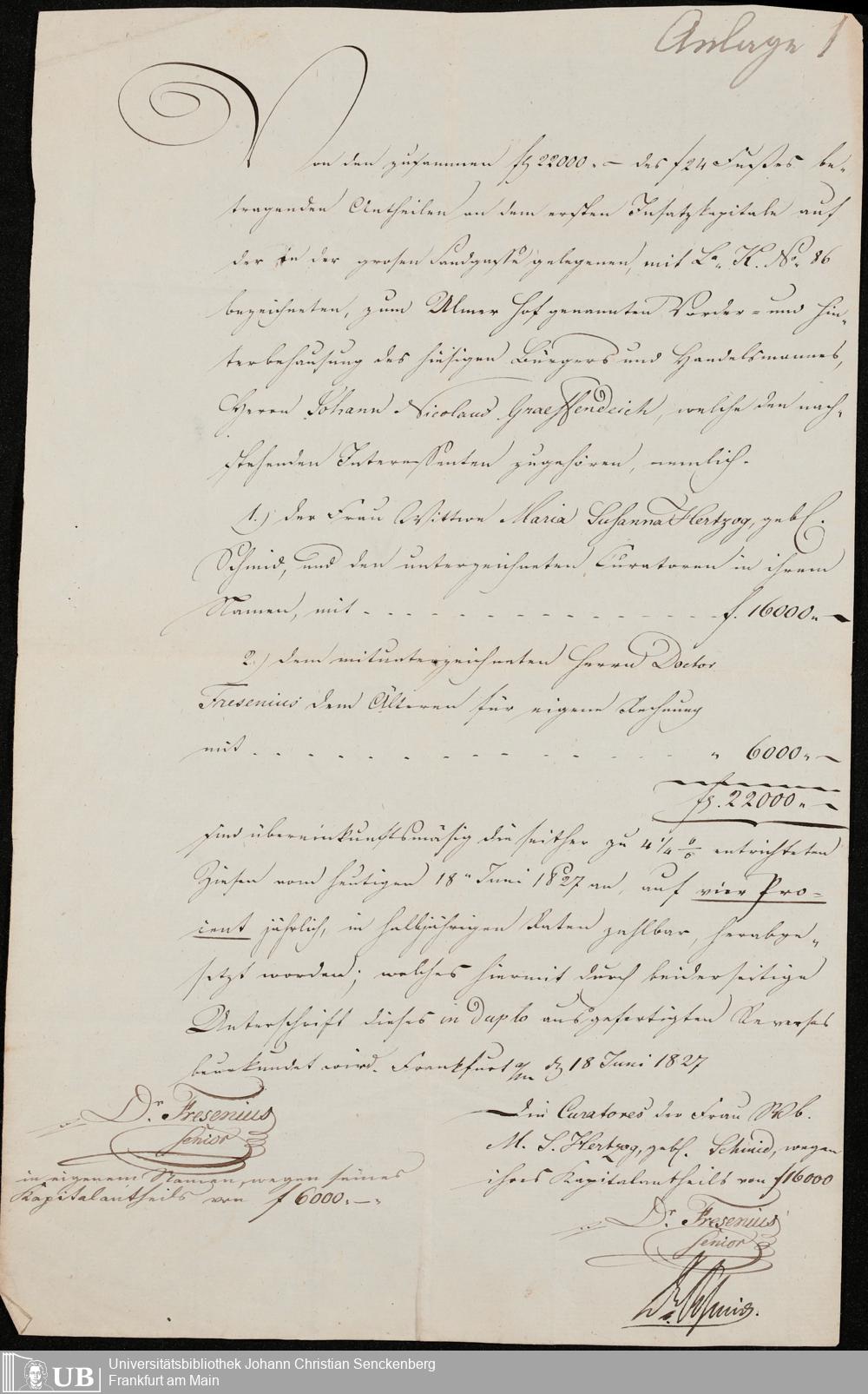 B 5 Dr. Senckenbergische Stiftung, 105 - Erbschaftspapier Gräffendeich
