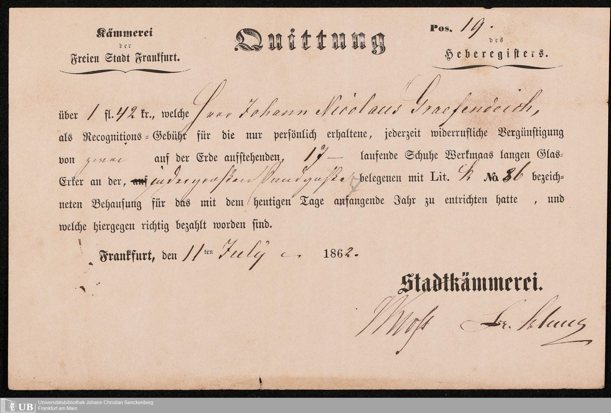 B 5 Dr. Senckenbergische Stiftung, 105 - Erbschaftspapier Gräffendeich