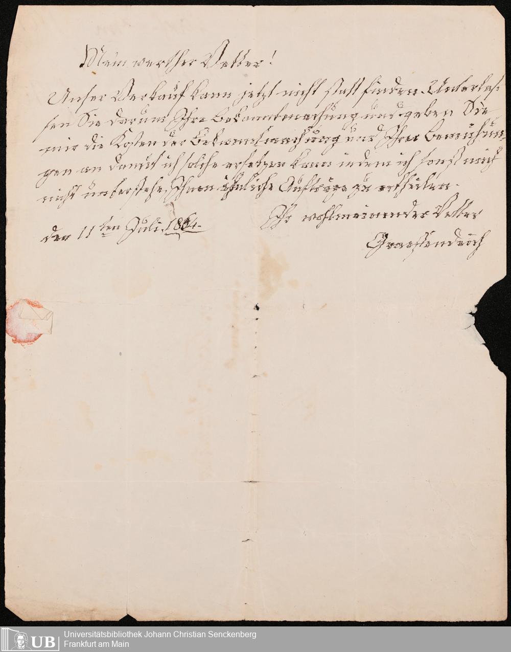 B 5 Dr. Senckenbergische Stiftung, 105 - Erbschaftspapier Gräffendeich