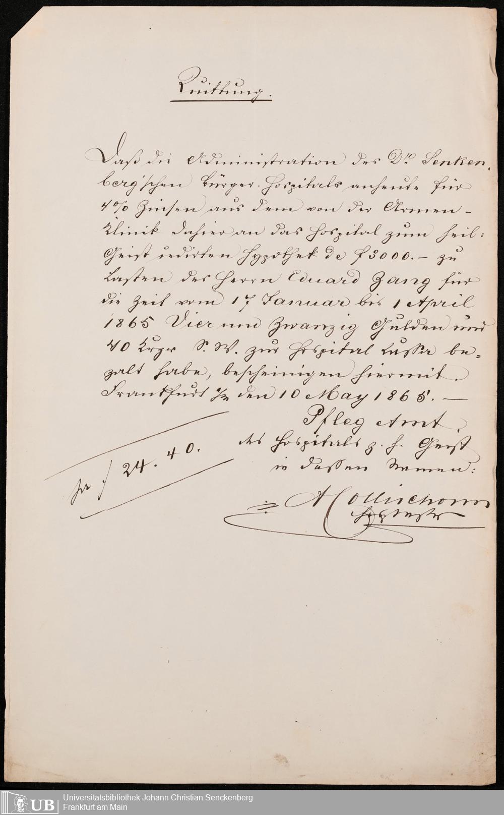 B 5 Dr. Senckenbergische Stiftung, 105 - Erbschaftspapier Gräffendeich