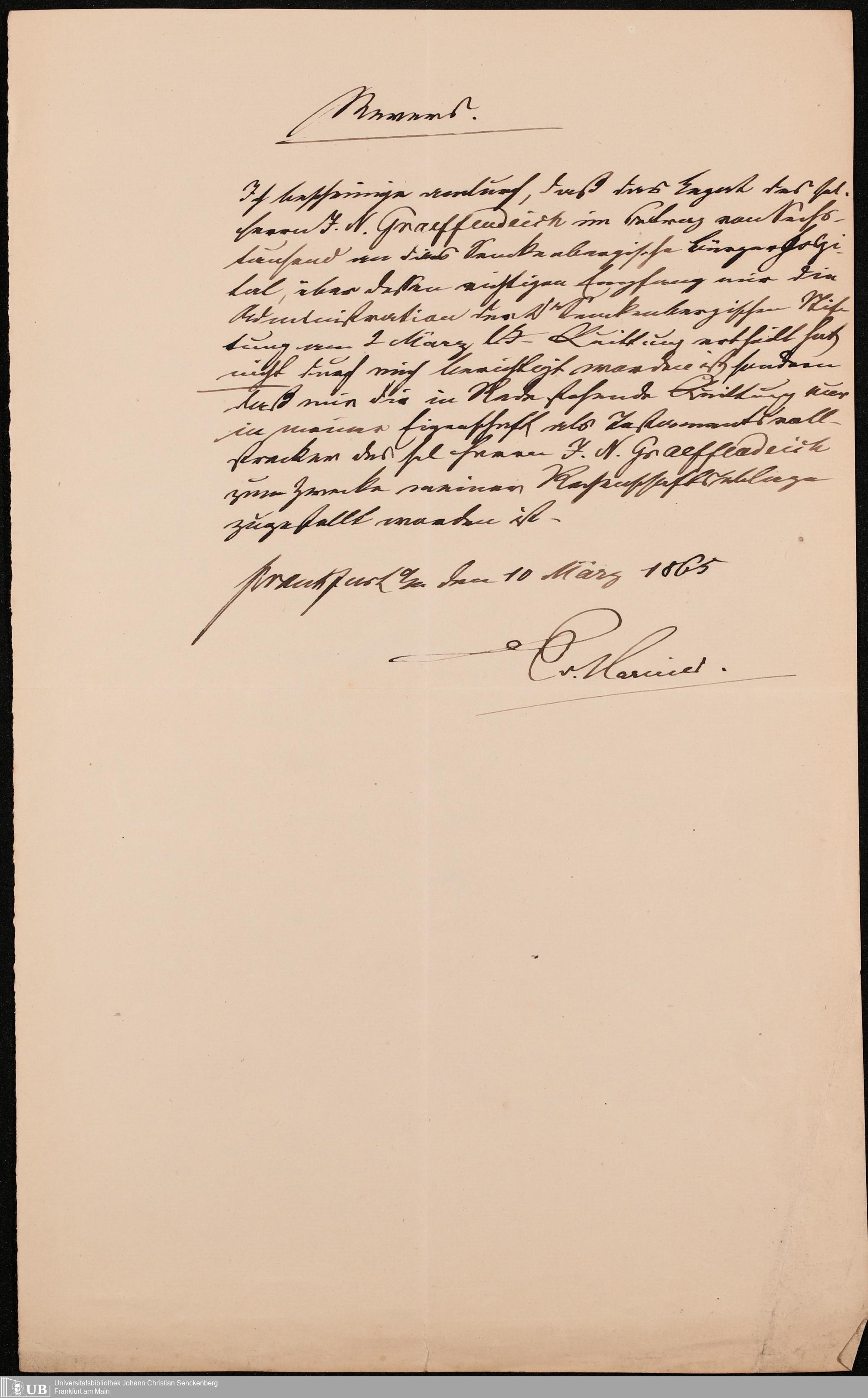 B 5 Dr. Senckenbergische Stiftung, 105 - Erbschaftspapier Gräffendeich