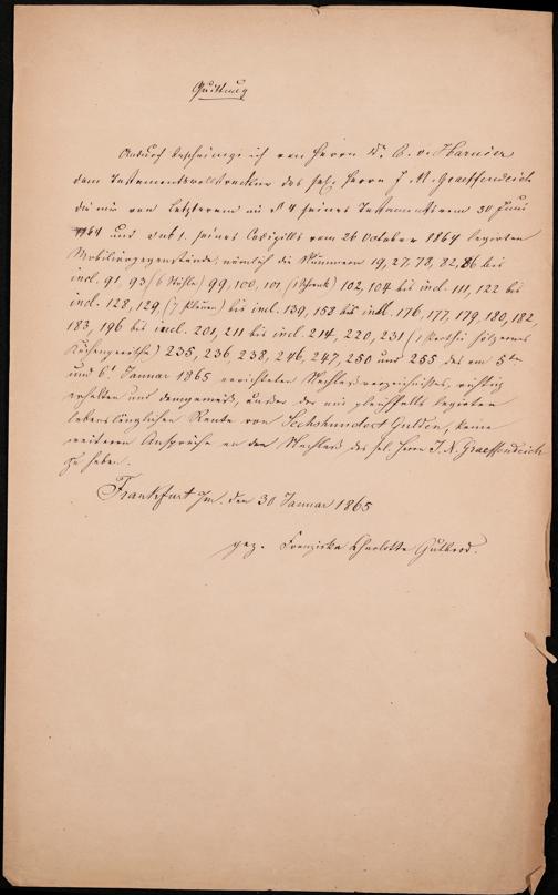 B 5 Dr. Senckenbergische Stiftung, 105 - Erbschaftspapier Gräffendeich