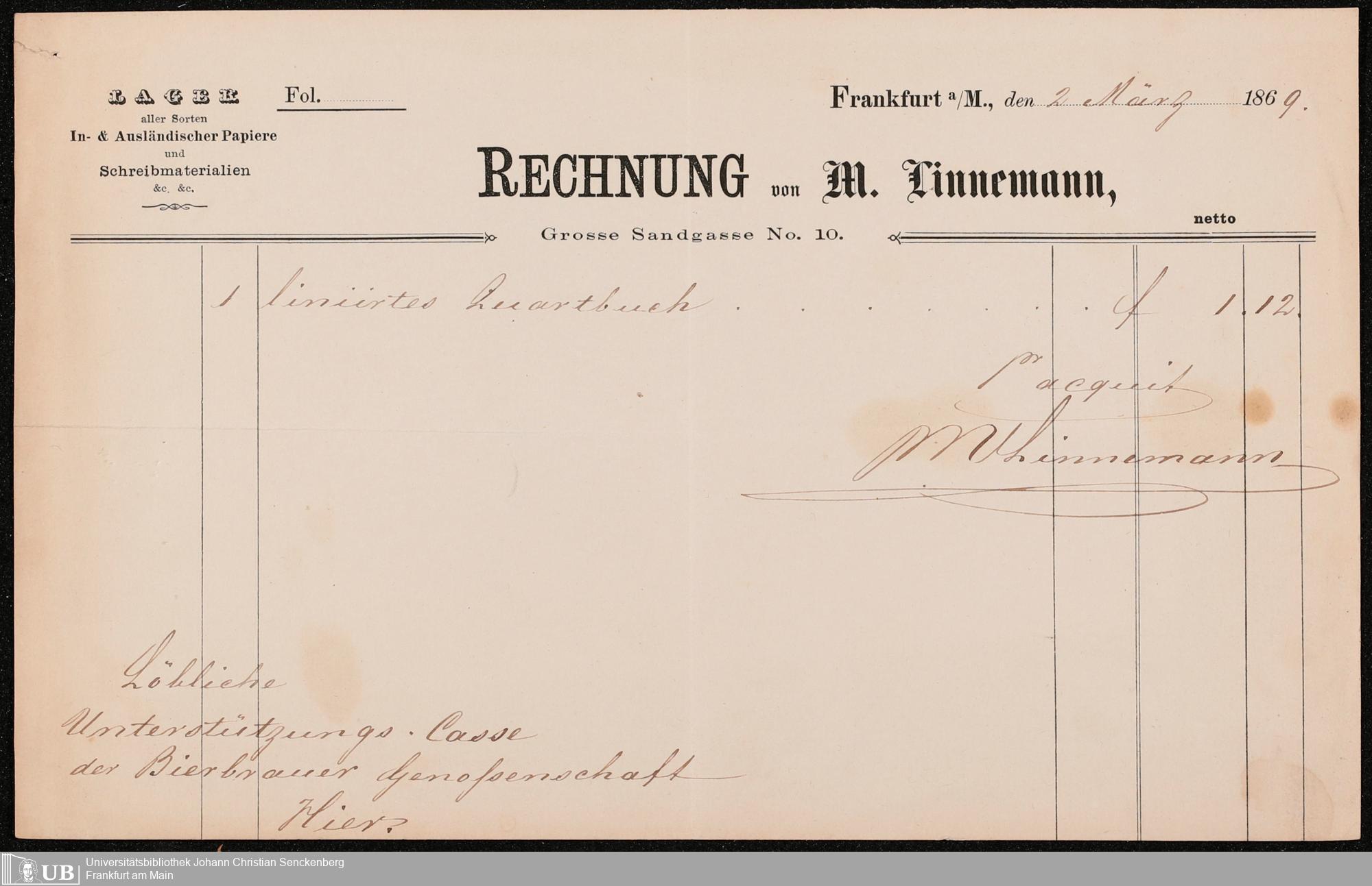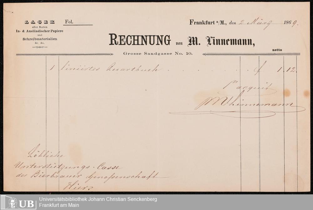 B 5 Dr. Senckenbergische Stiftung, 148 - Kassenbücher der Unterstützungskasse der Bierbrauer-Genossenschaft
