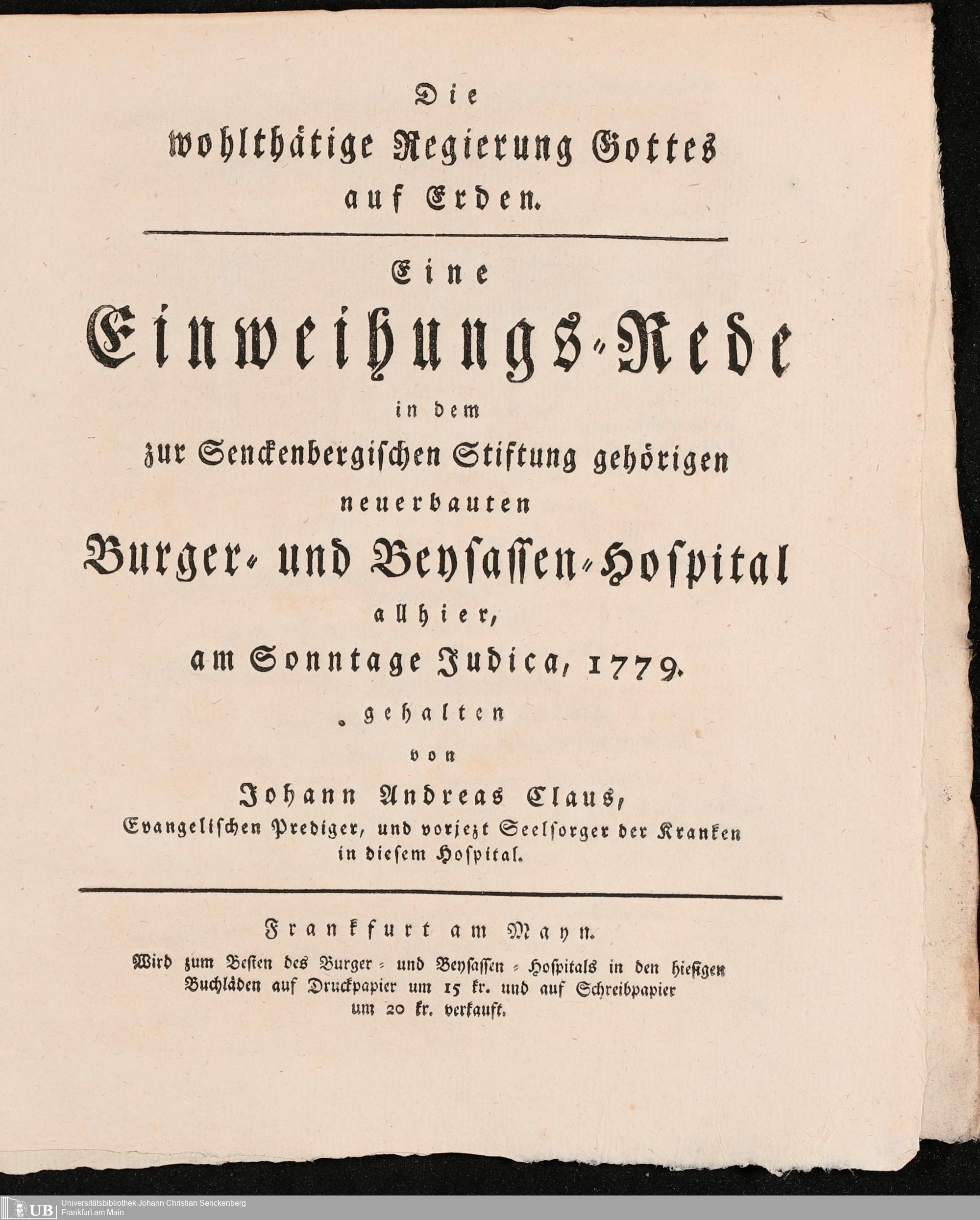 B 5 Dr. Senckenbergische Stiftung, 190 - Einweihungsrede im Bürgerhospital