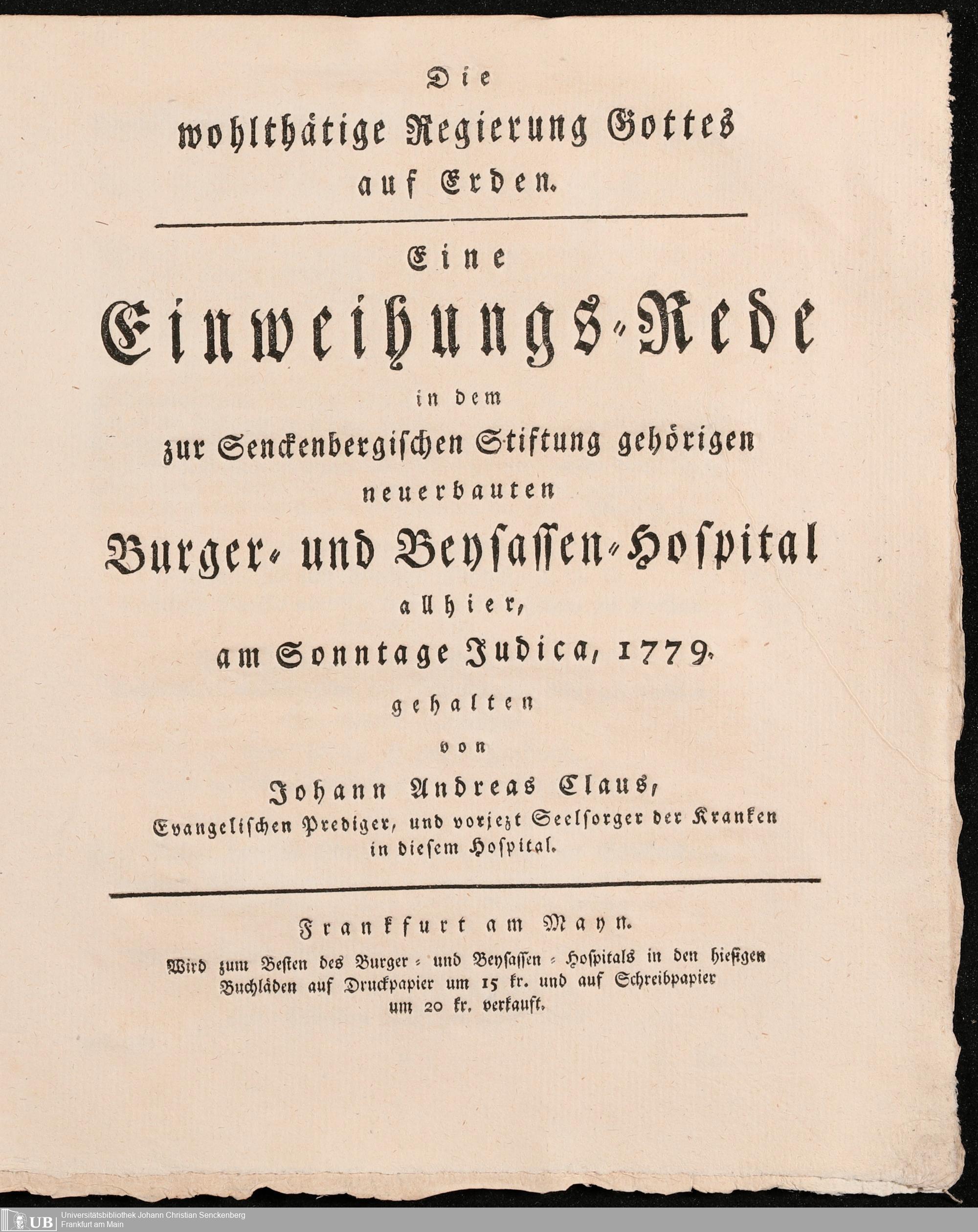 B 5 Dr. Senckenbergische Stiftung, 190 - Einweihungsrede im Bürgerhospital