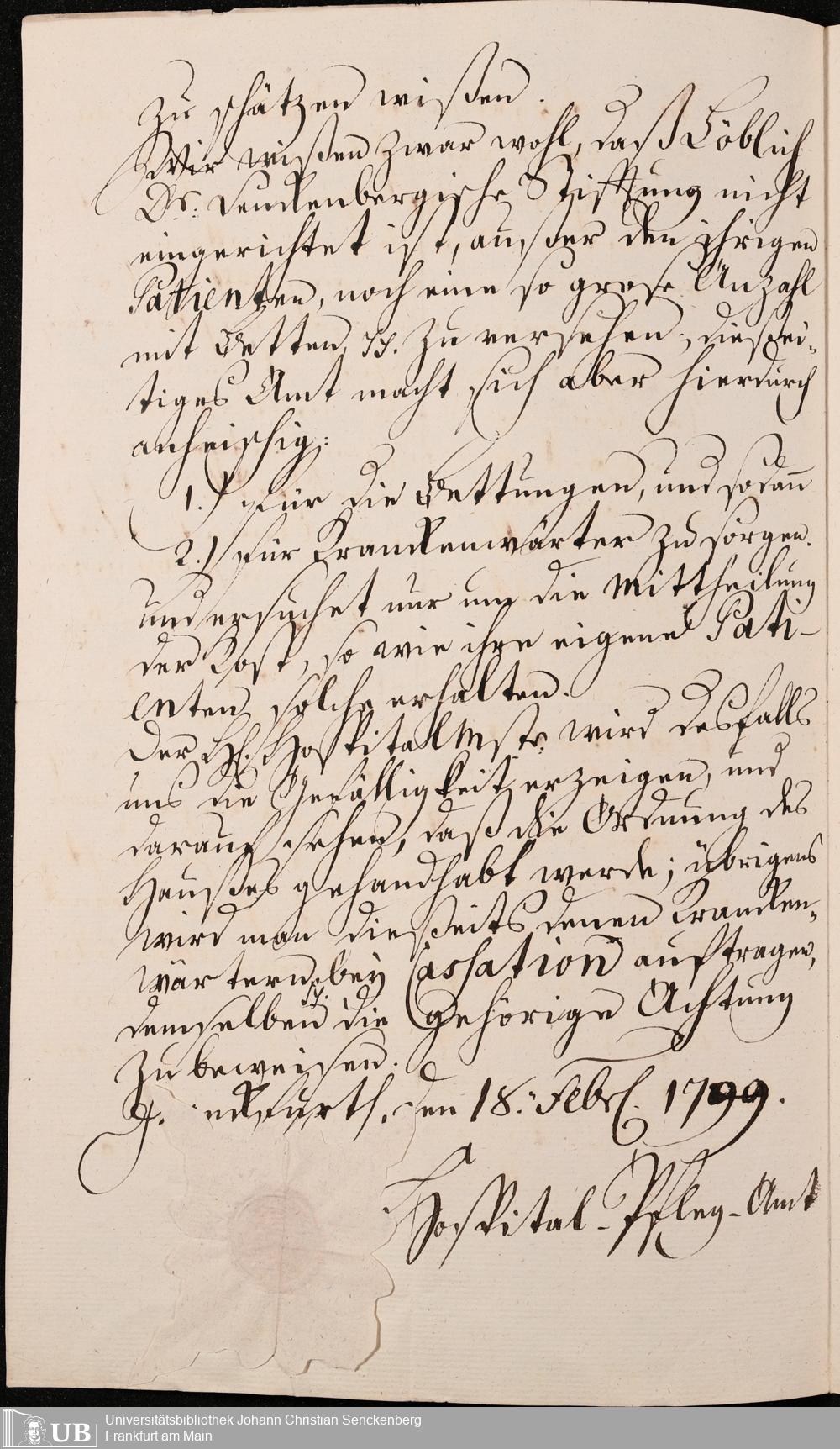 B 5 Dr. Senckenbergische Stiftung, 220 - Aufenthalt unheilbar Kranker und Aufnahme im Bürgerhospital