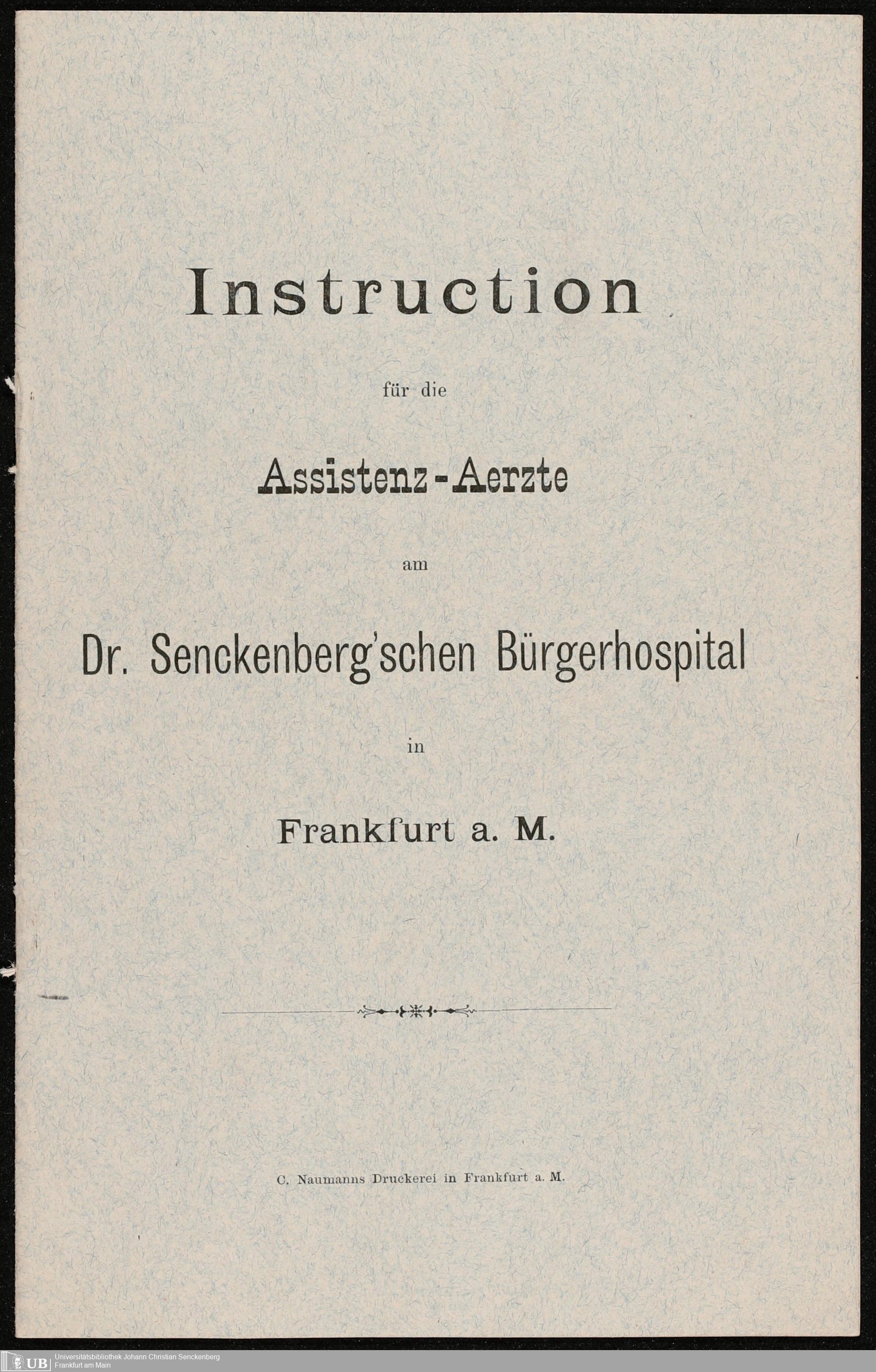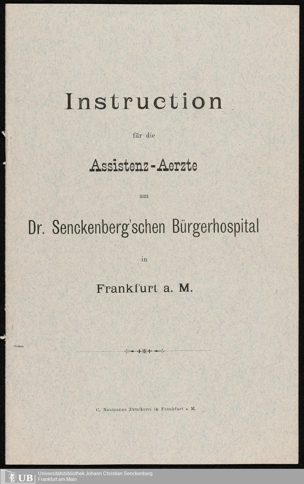 B 5 Dr. Senckenbergische Stiftung, 215 - Anstellungsregulativ und Instruktion für die Ärzte im Hospital