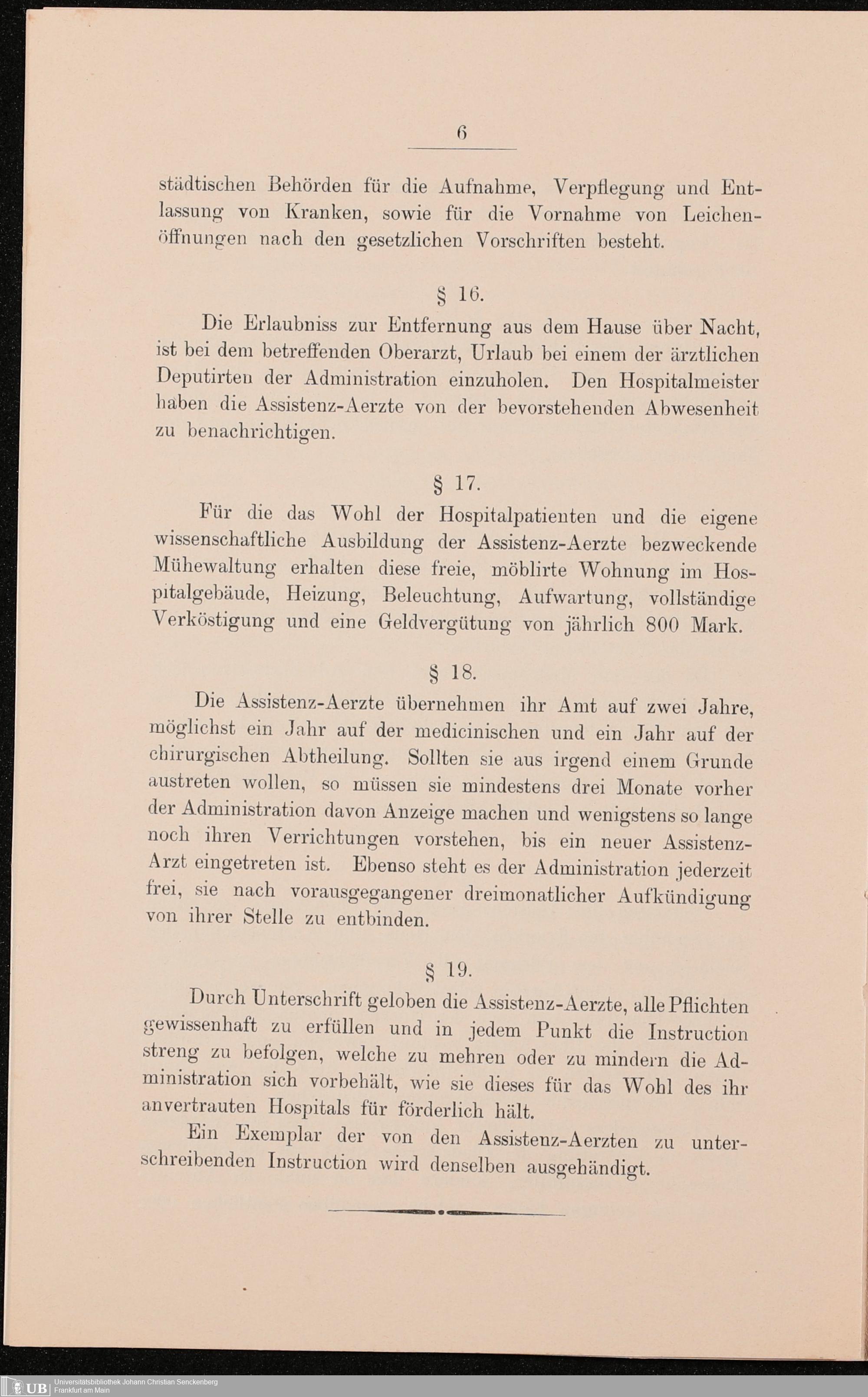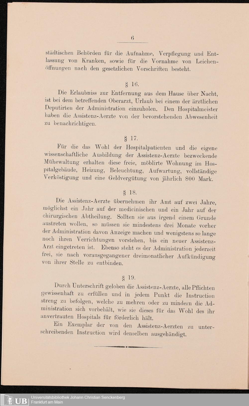B 5 Dr. Senckenbergische Stiftung, 215 - Anstellungsregulativ und Instruktion für die Ärzte im Hospital