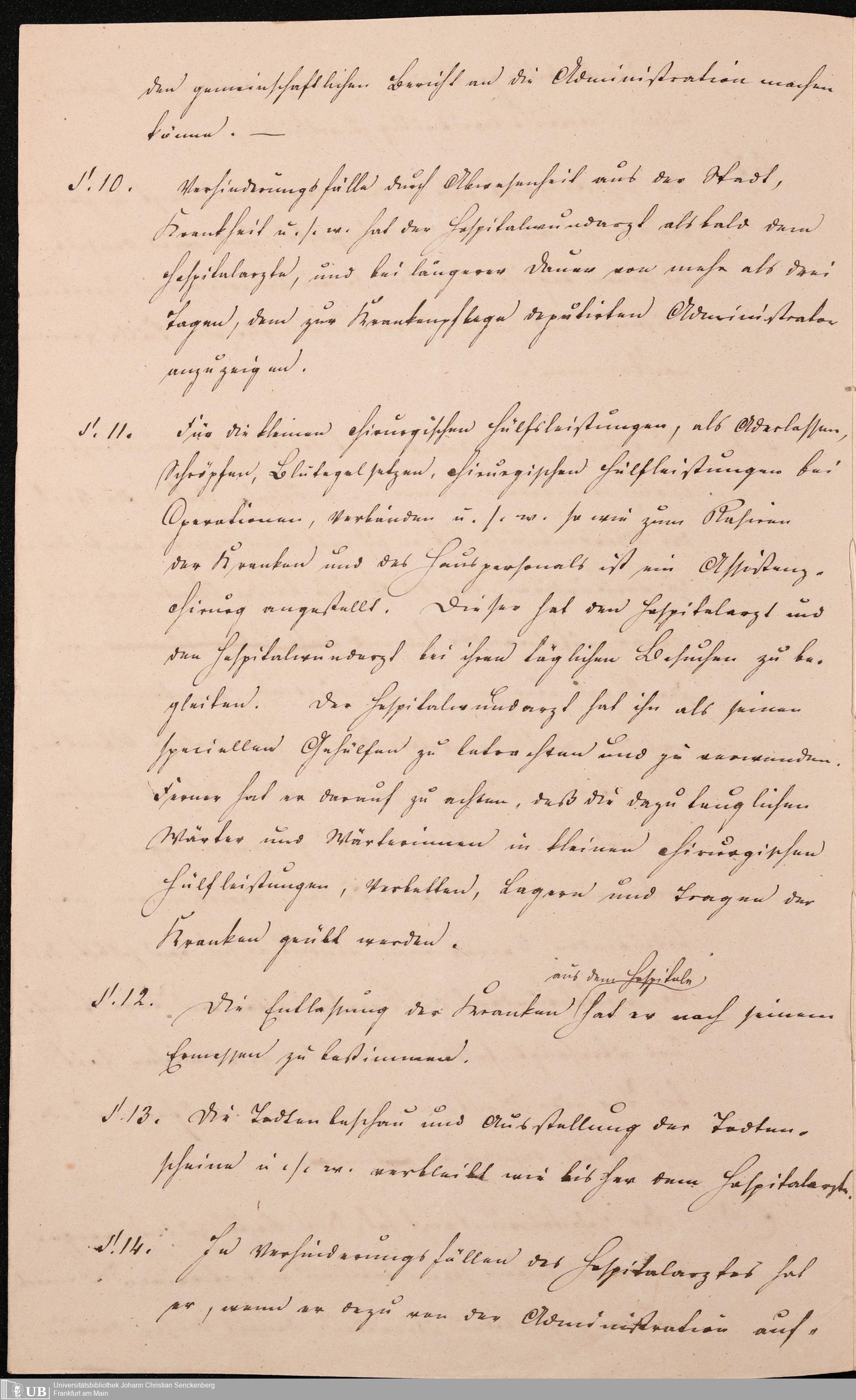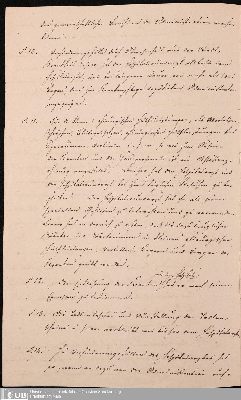 B 5 Dr. Senckenbergische Stiftung, 215 - Anstellungsregulativ und Instruktion für die Ärzte im Hospital