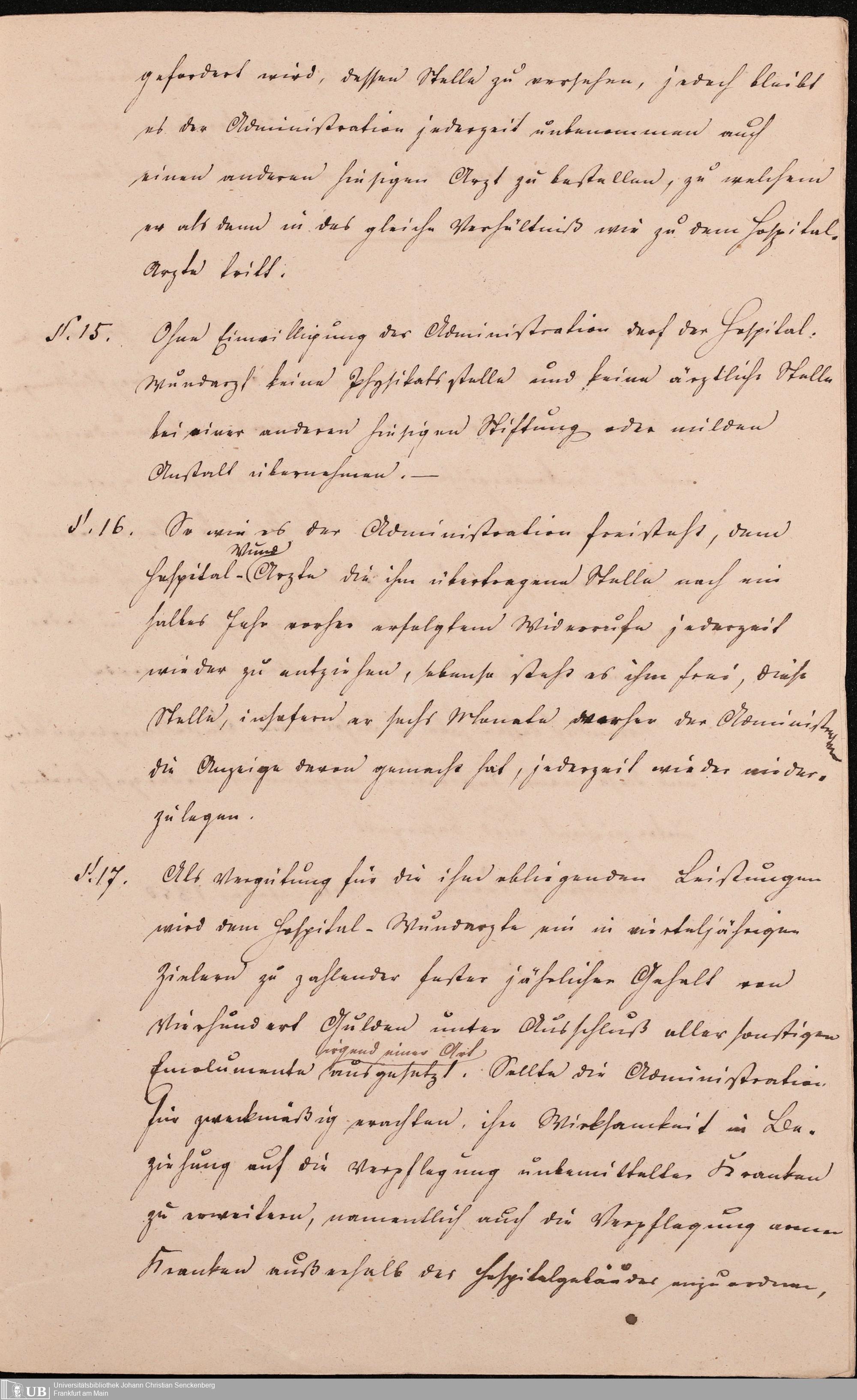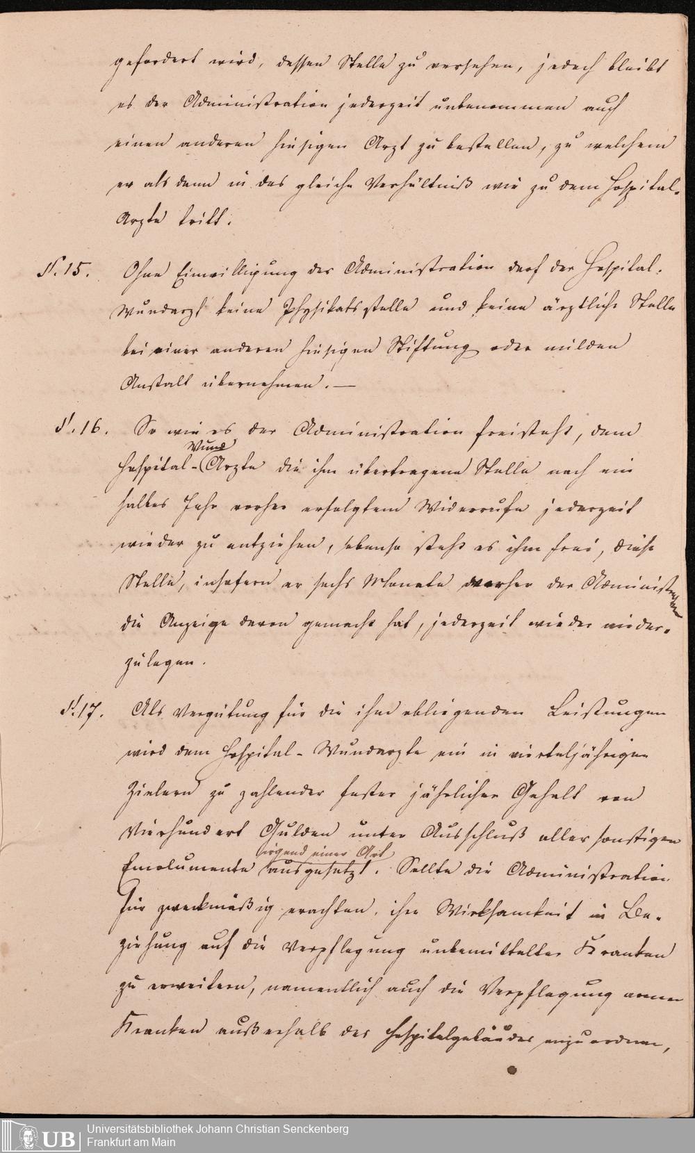 B 5 Dr. Senckenbergische Stiftung, 215 - Anstellungsregulativ und Instruktion für die Ärzte im Hospital