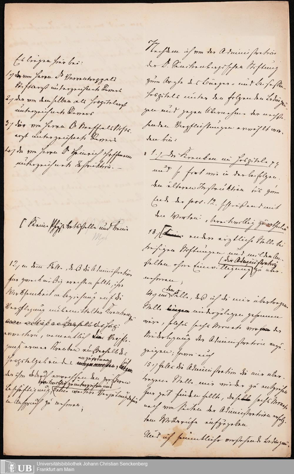 B 5 Dr. Senckenbergische Stiftung, 215 - Anstellungsregulativ und Instruktion für die Ärzte im Hospital