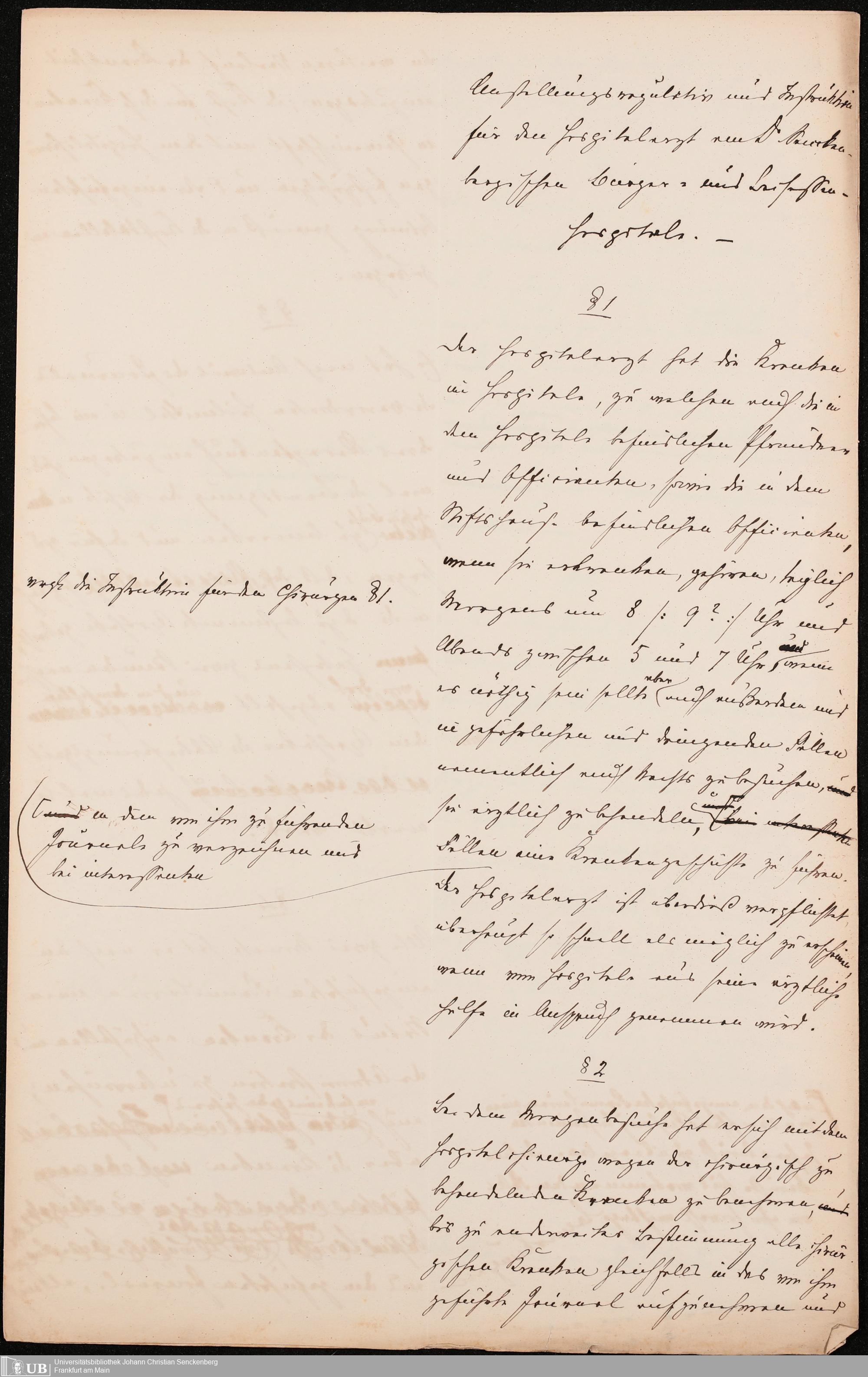 B 5 Dr. Senckenbergische Stiftung, 215 - Anstellungsregulativ und Instruktion für die Ärzte im Hospital