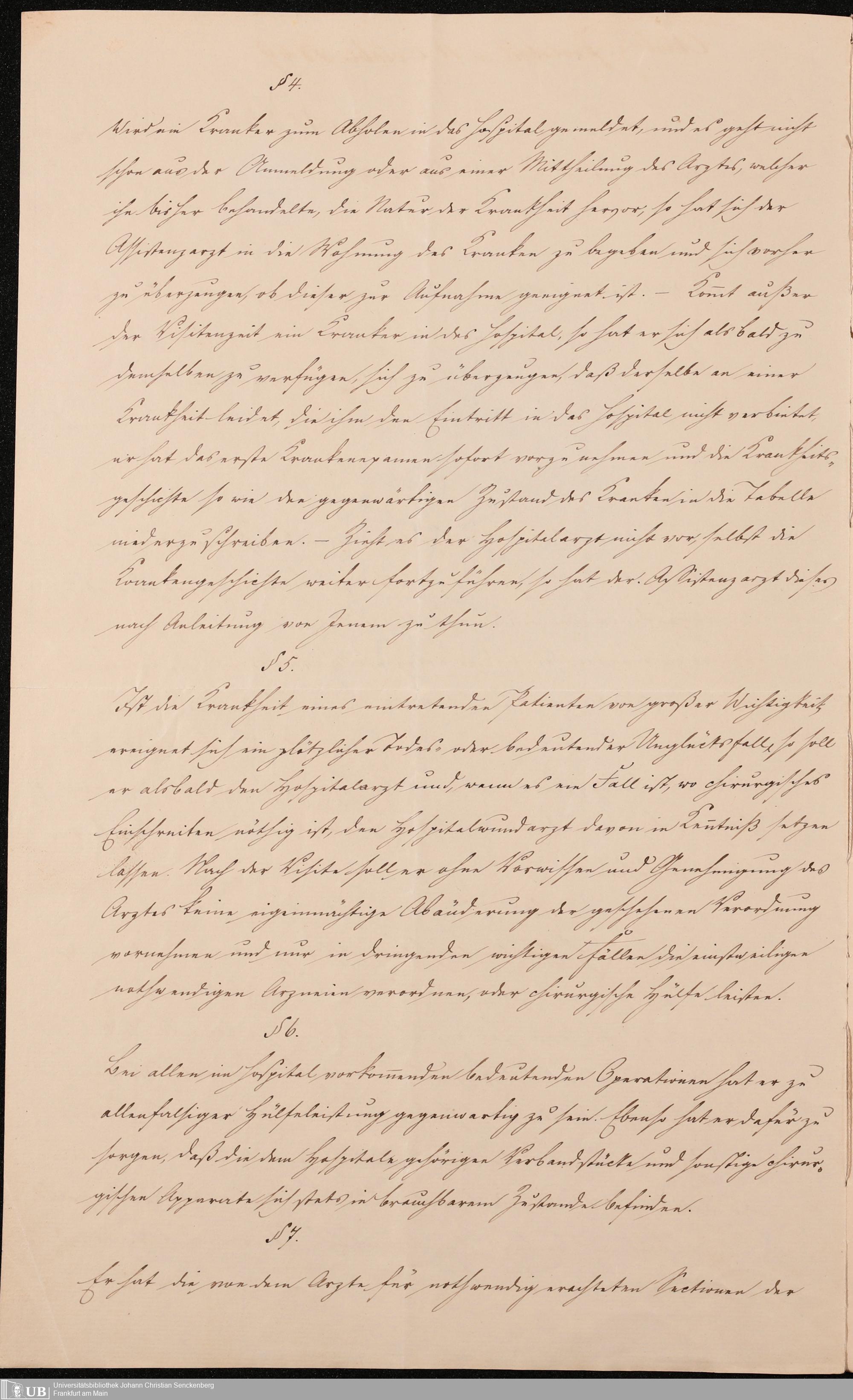 B 5 Dr. Senckenbergische Stiftung, 215 - Anstellungsregulativ und Instruktion für die Ärzte im Hospital