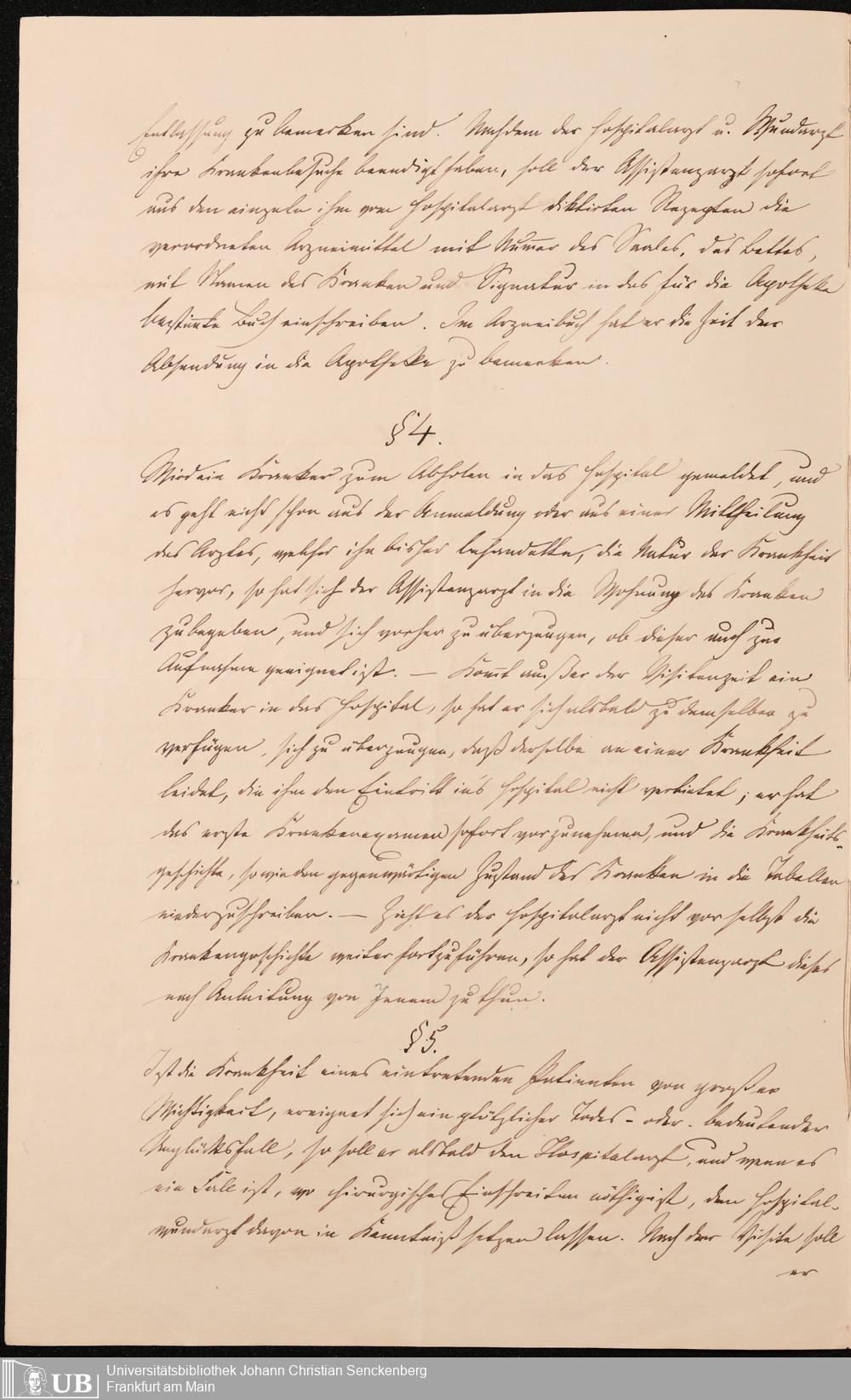 B 5 Dr. Senckenbergische Stiftung, 215 - Anstellungsregulativ und Instruktion für die Ärzte im Hospital
