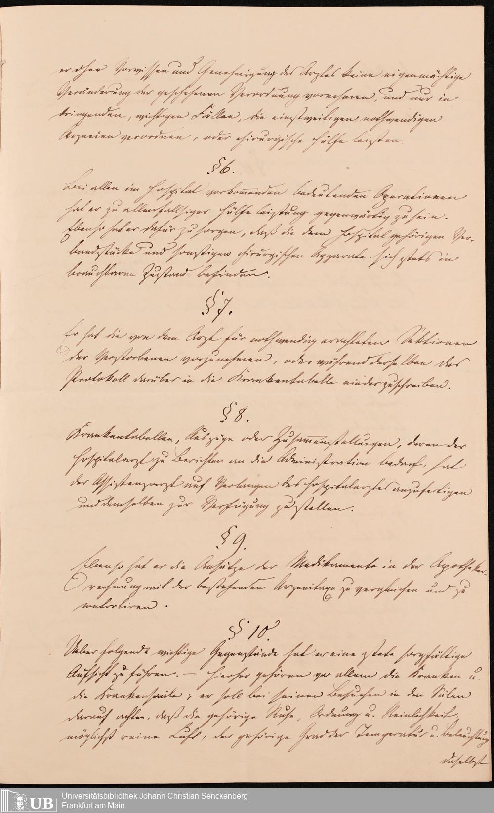 B 5 Dr. Senckenbergische Stiftung, 215 - Anstellungsregulativ und Instruktion für die Ärzte im Hospital