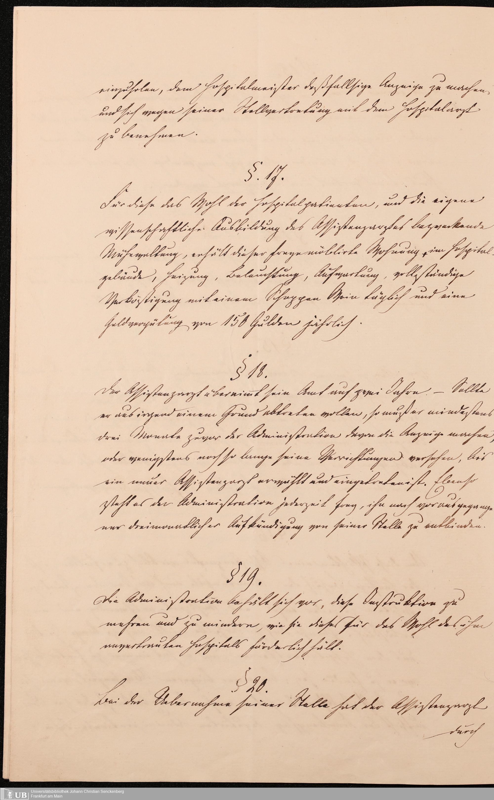 B 5 Dr. Senckenbergische Stiftung, 215 - Anstellungsregulativ und Instruktion für die Ärzte im Hospital