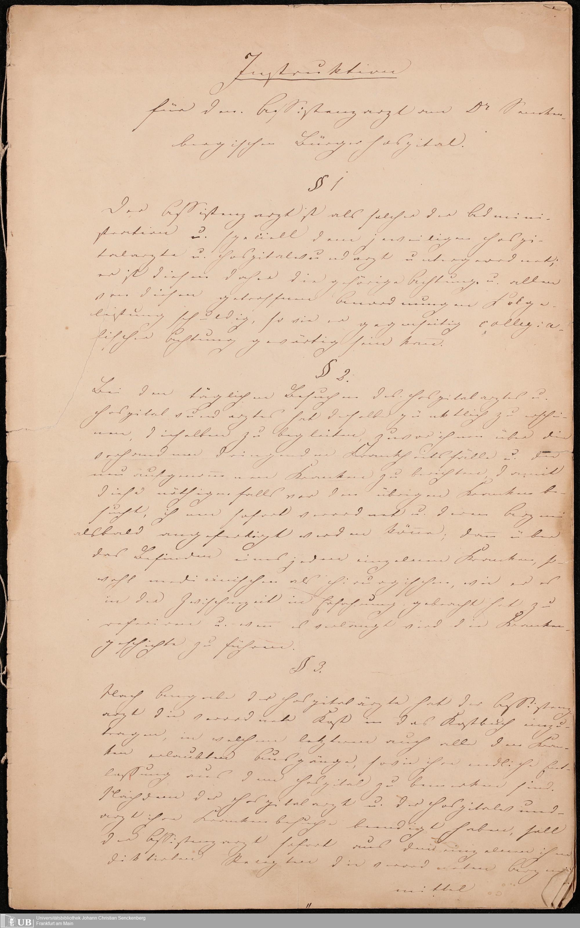 B 5 Dr. Senckenbergische Stiftung, 215 - Anstellungsregulativ und Instruktion für die Ärzte im Hospital