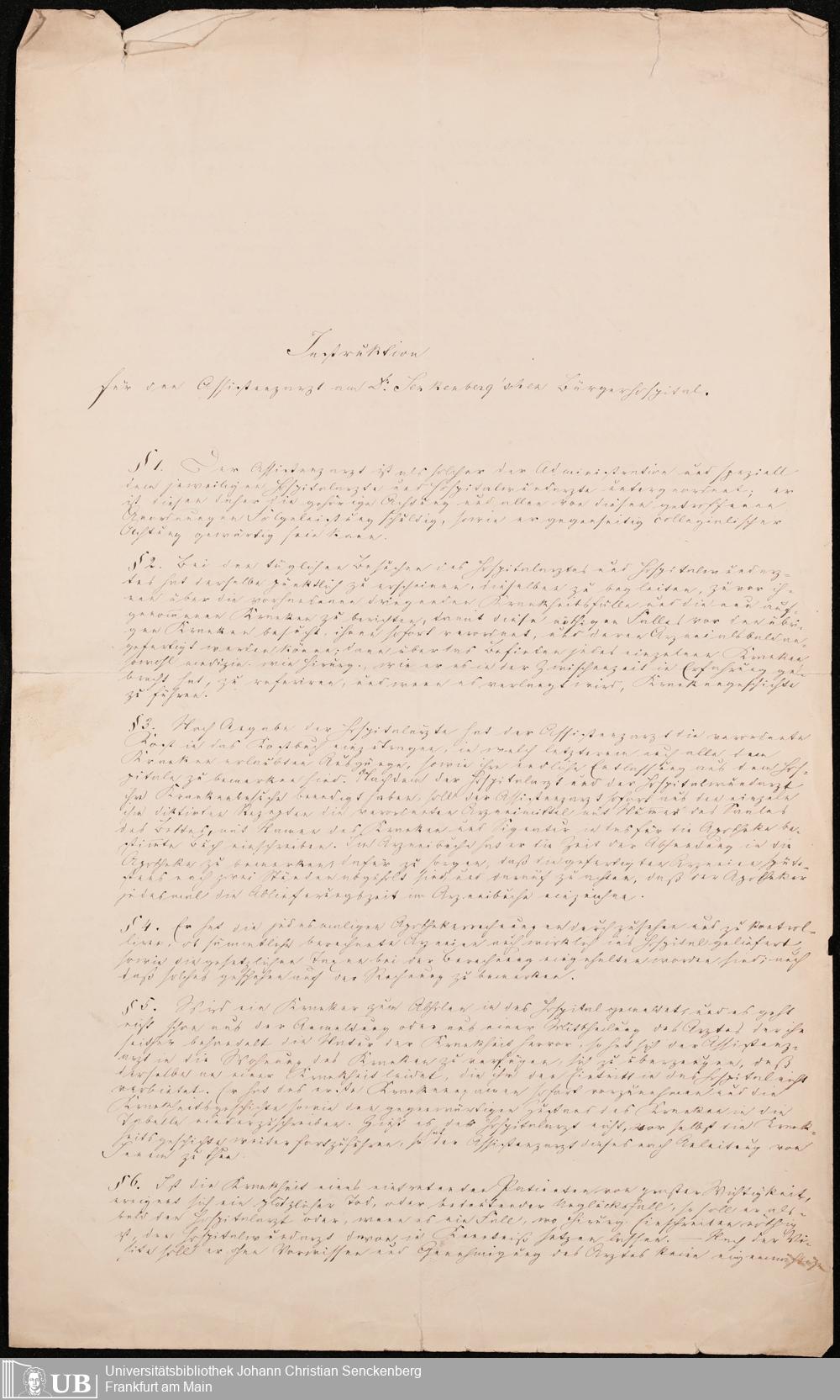 B 5 Dr. Senckenbergische Stiftung, 215 - Anstellungsregulativ und Instruktion für die Ärzte im Hospital