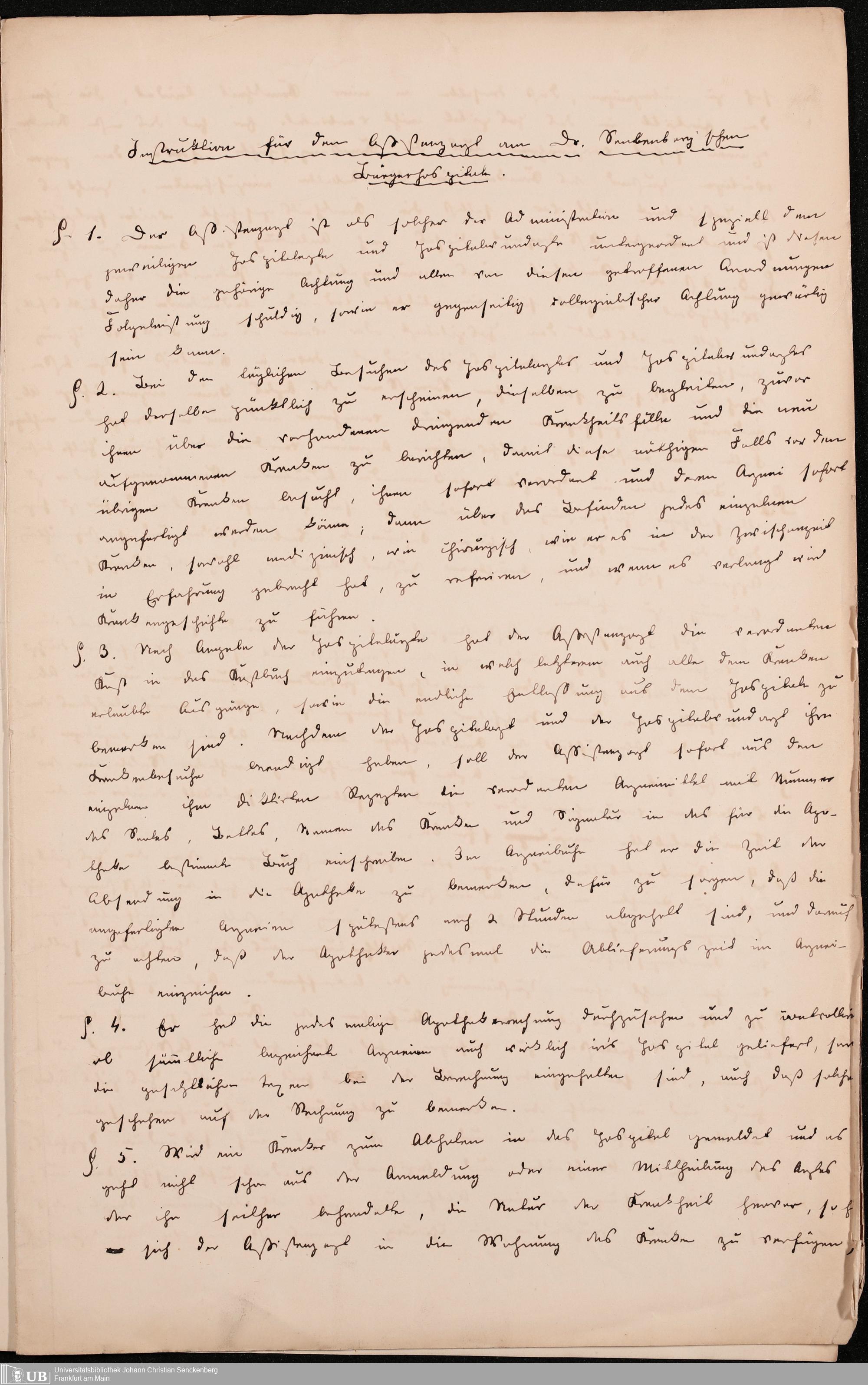B 5 Dr. Senckenbergische Stiftung, 215 - Anstellungsregulativ und Instruktion für die Ärzte im Hospital