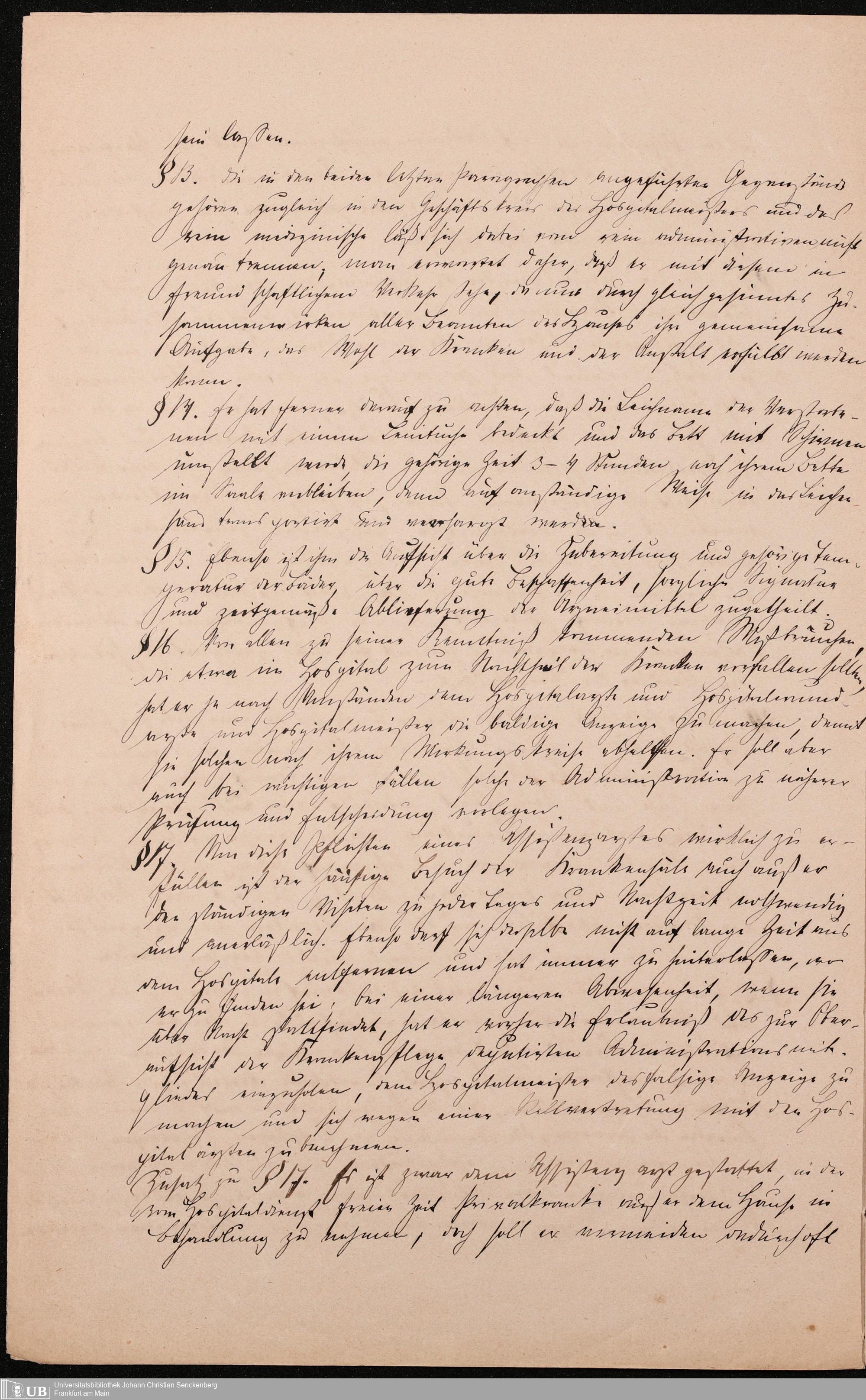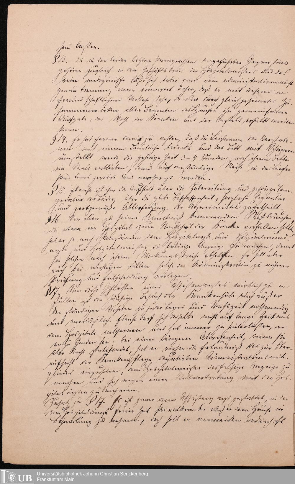 B 5 Dr. Senckenbergische Stiftung, 215 - Anstellungsregulativ und Instruktion für die Ärzte im Hospital