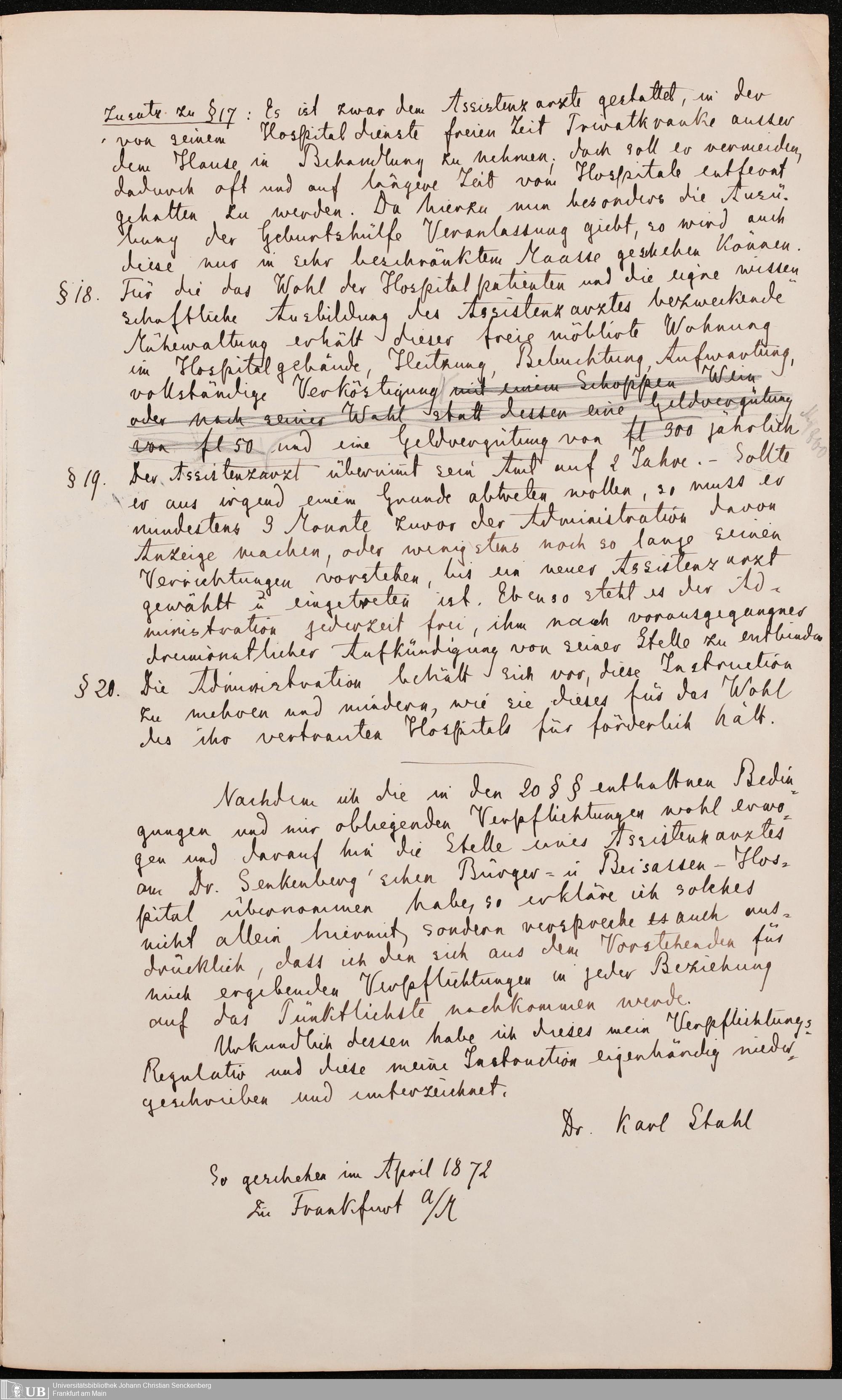 B 5 Dr. Senckenbergische Stiftung, 215 - Anstellungsregulativ und Instruktion für die Ärzte im Hospital