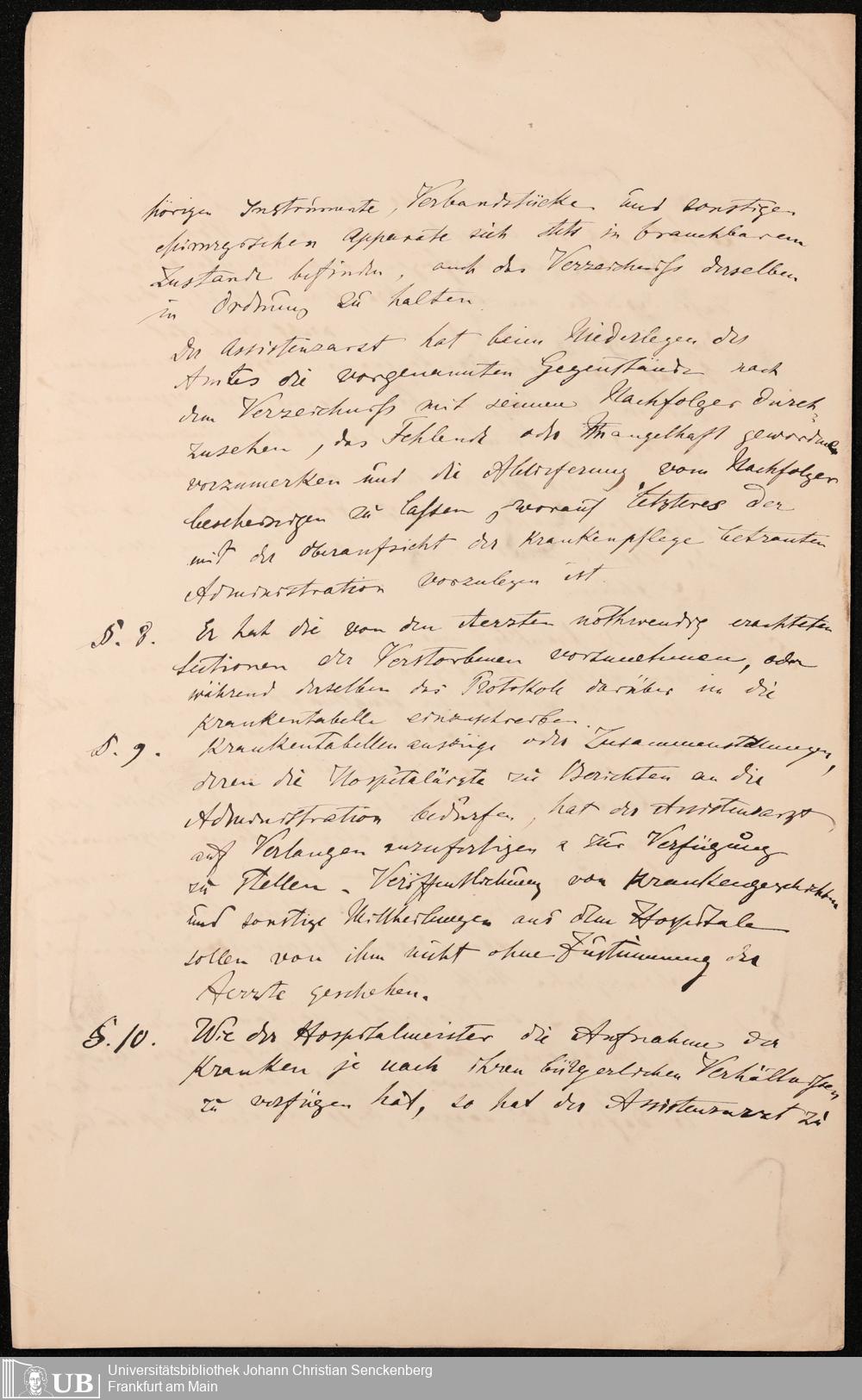 B 5 Dr. Senckenbergische Stiftung, 215 - Anstellungsregulativ und Instruktion für die Ärzte im Hospital
