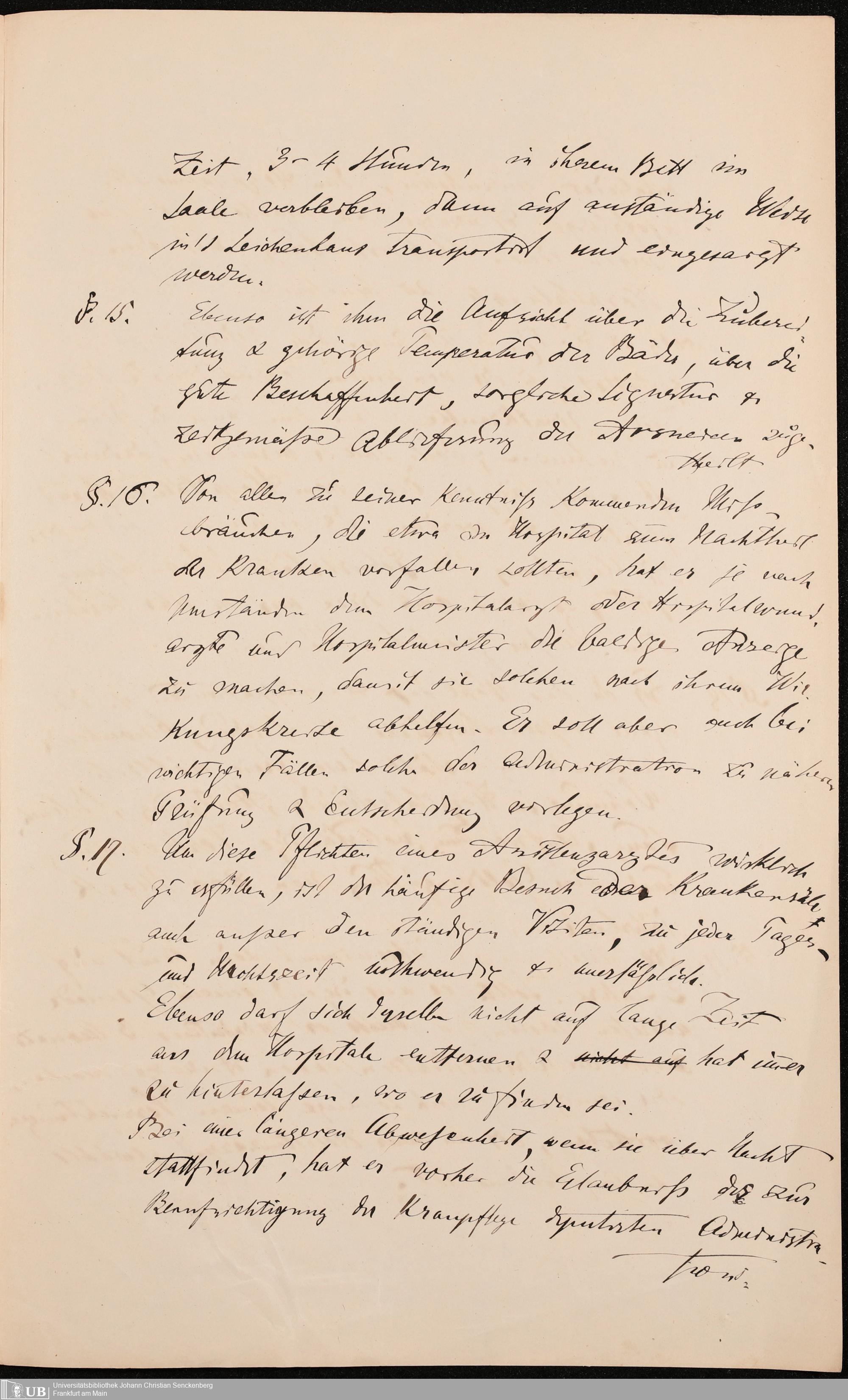 B 5 Dr. Senckenbergische Stiftung, 215 - Anstellungsregulativ und Instruktion für die Ärzte im Hospital