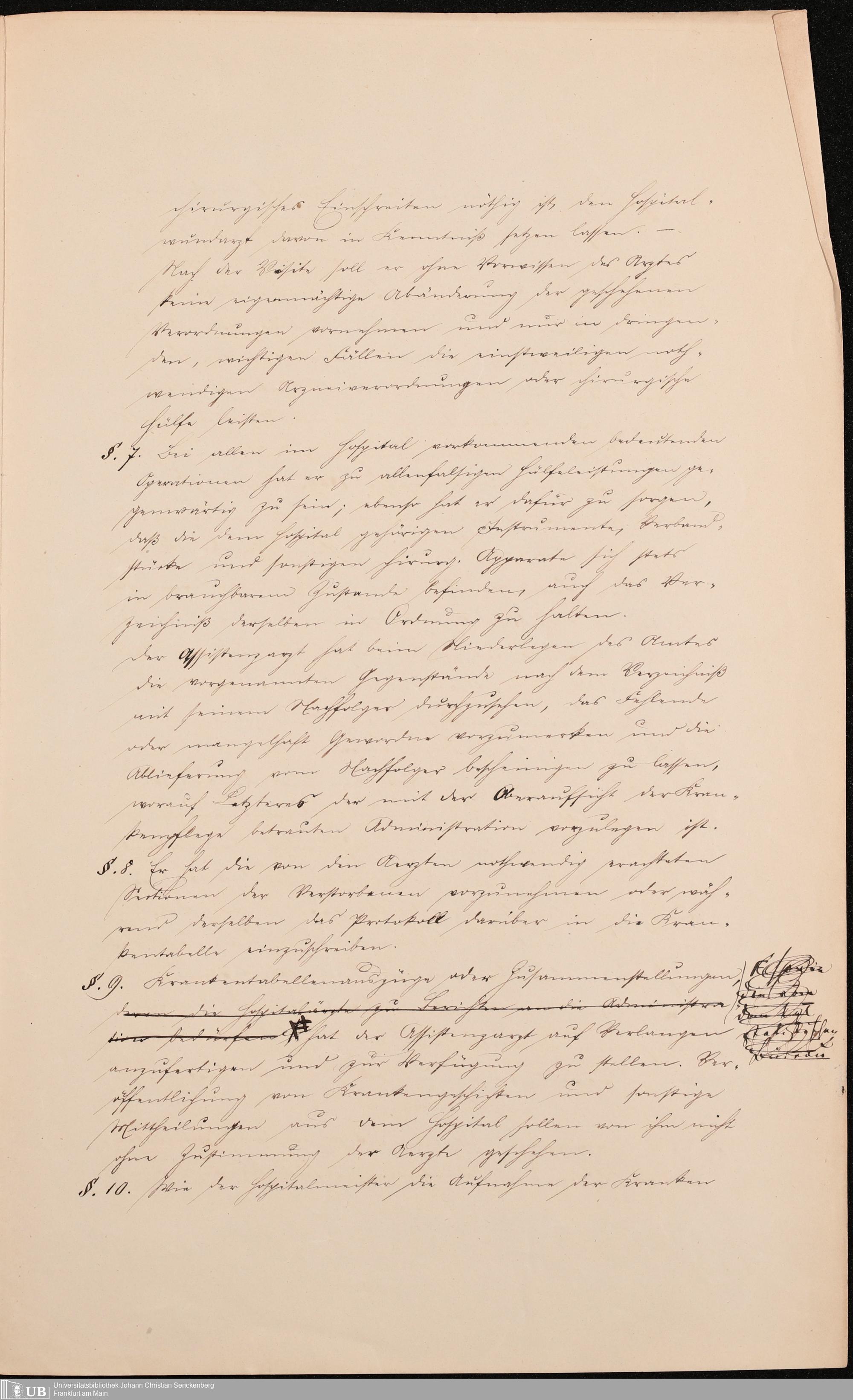 B 5 Dr. Senckenbergische Stiftung, 215 - Anstellungsregulativ und Instruktion für die Ärzte im Hospital