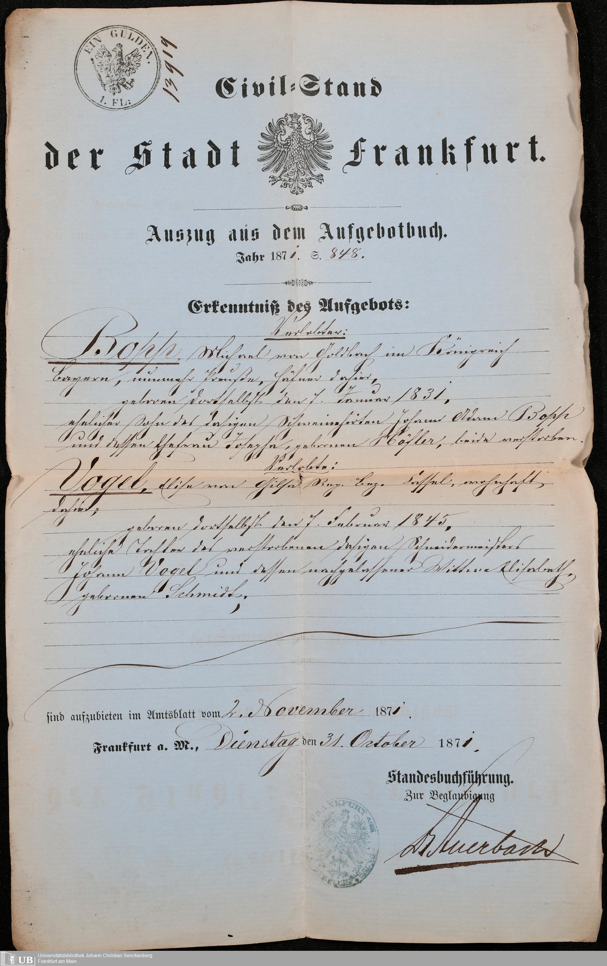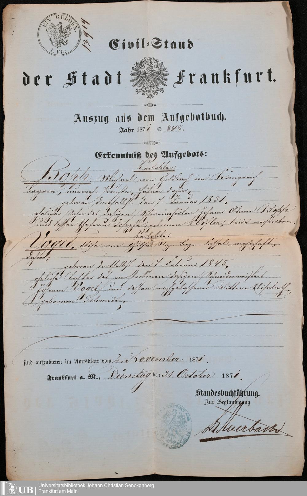 B 5 Dr. Senckenbergische Stiftung, 219 - Legitimationspapiere und Zeugnisse