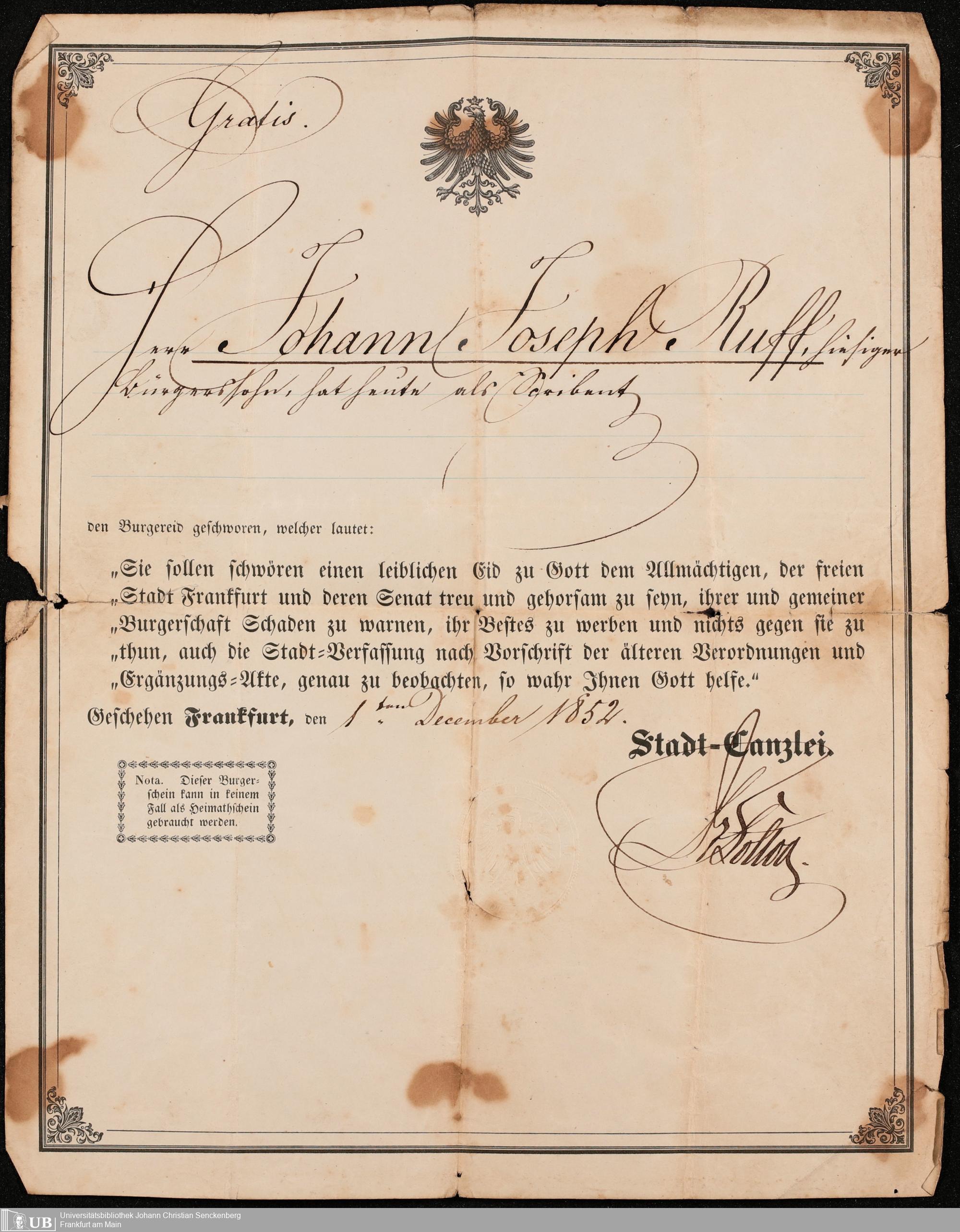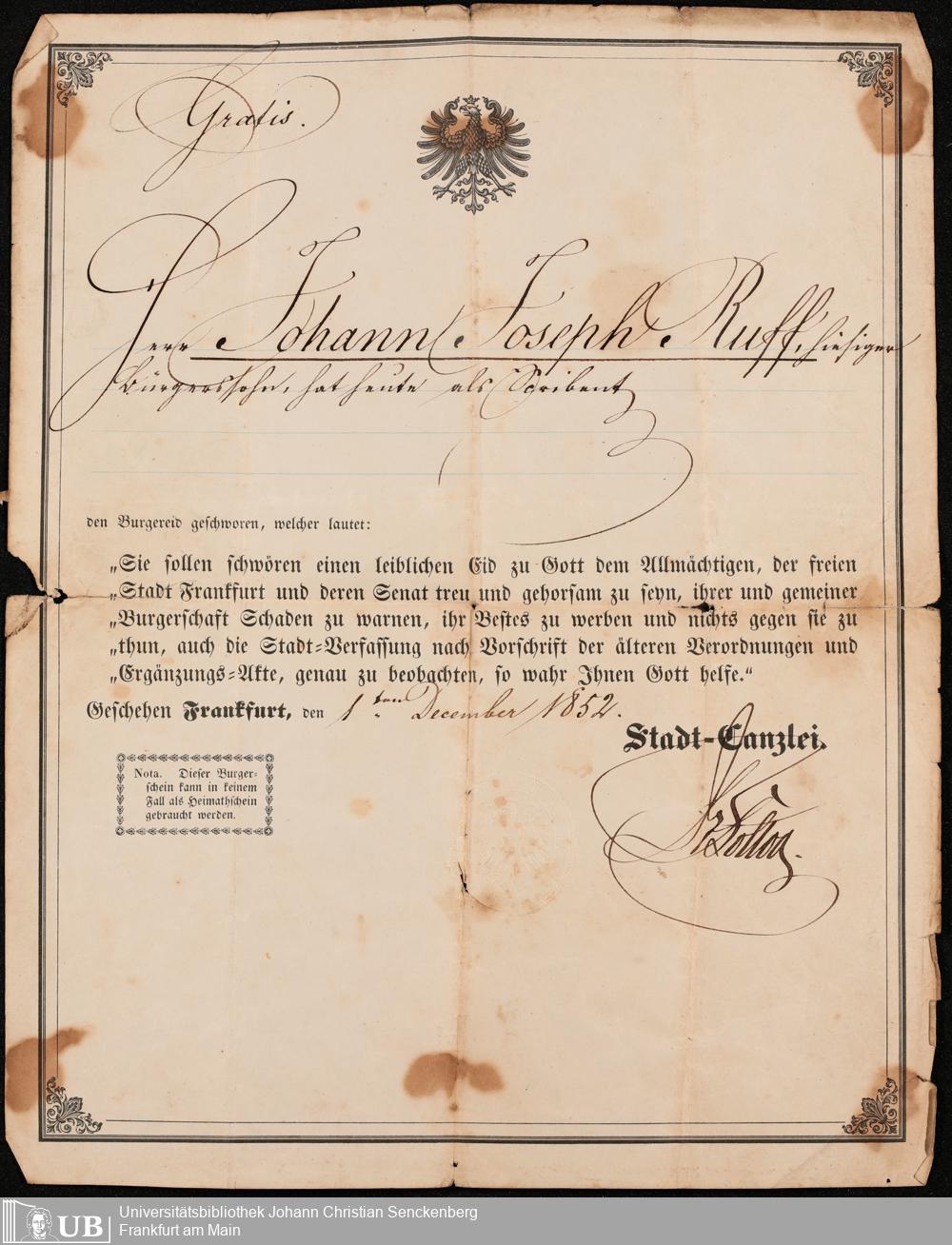B 5 Dr. Senckenbergische Stiftung, 219 - Legitimationspapiere und Zeugnisse